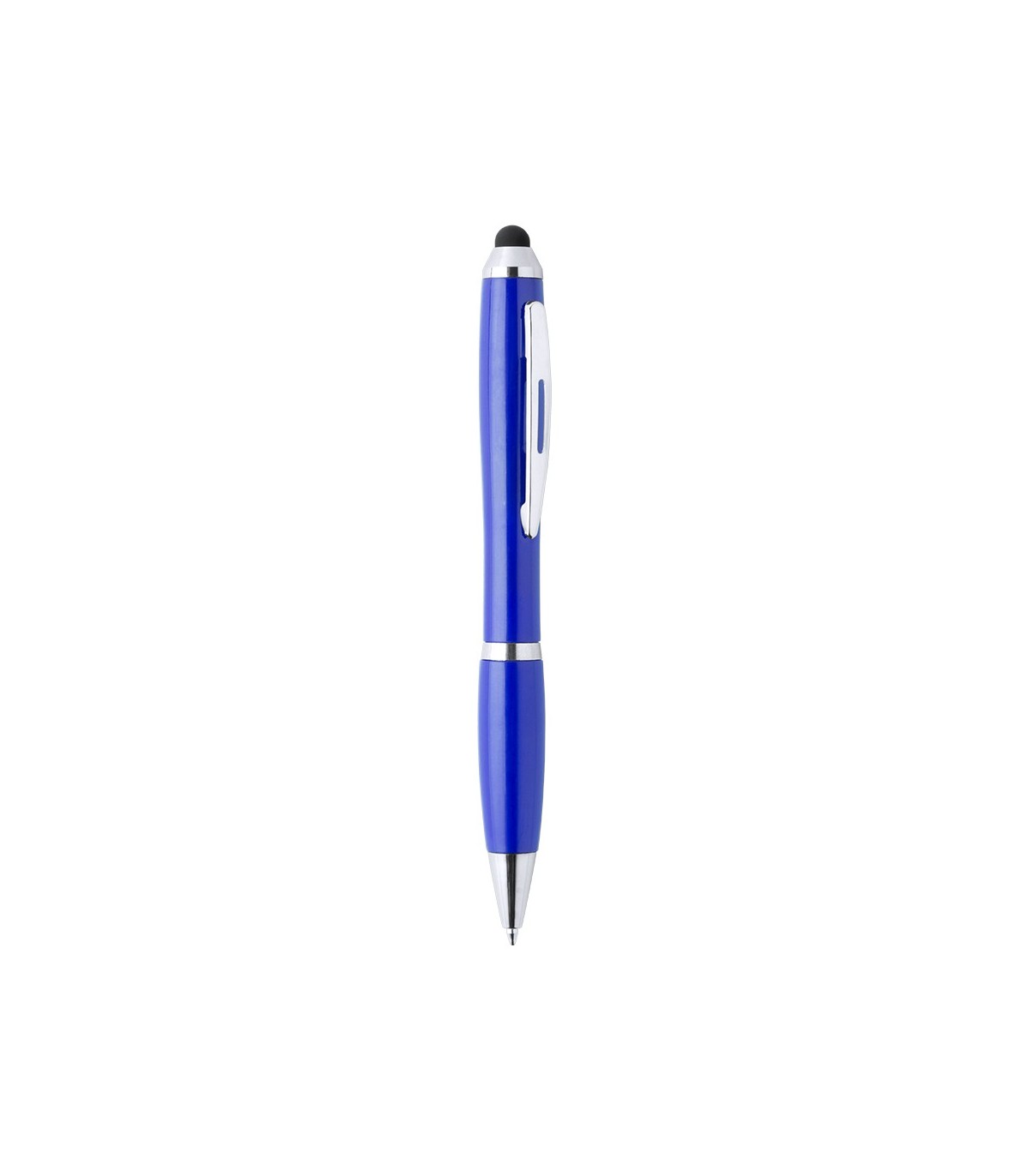 Bolígrafo puntero de apertura giratoria y cuerpo en colores brillantes a juego con la empuñadura, detalles cromados y clip metálico. Cartucho jumbo y tinta azul.