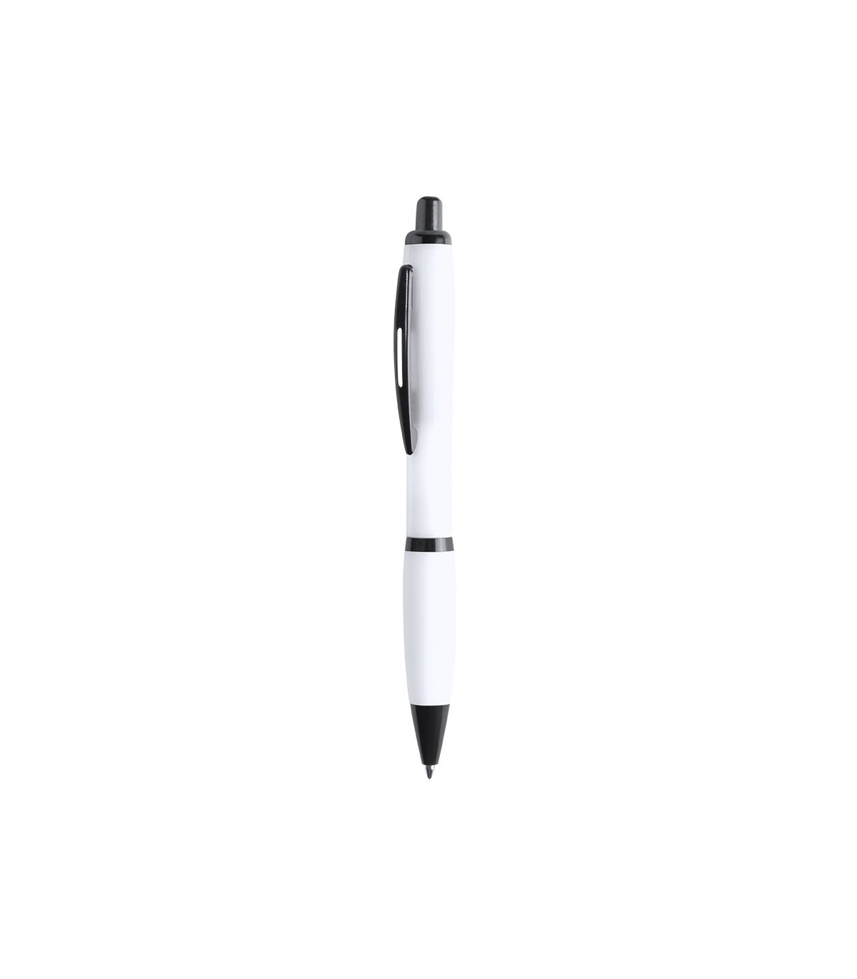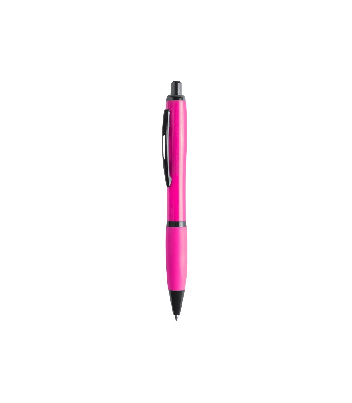 Bolígrafo de apertura con mecanismo pulsador y atrevido diseño bicolor con accesorios en negro y cuerpo de suave acabado en divertidos colores flúor. Con original clip metálico troquelado a juego y cómoda empuñadura. Tinta negra.