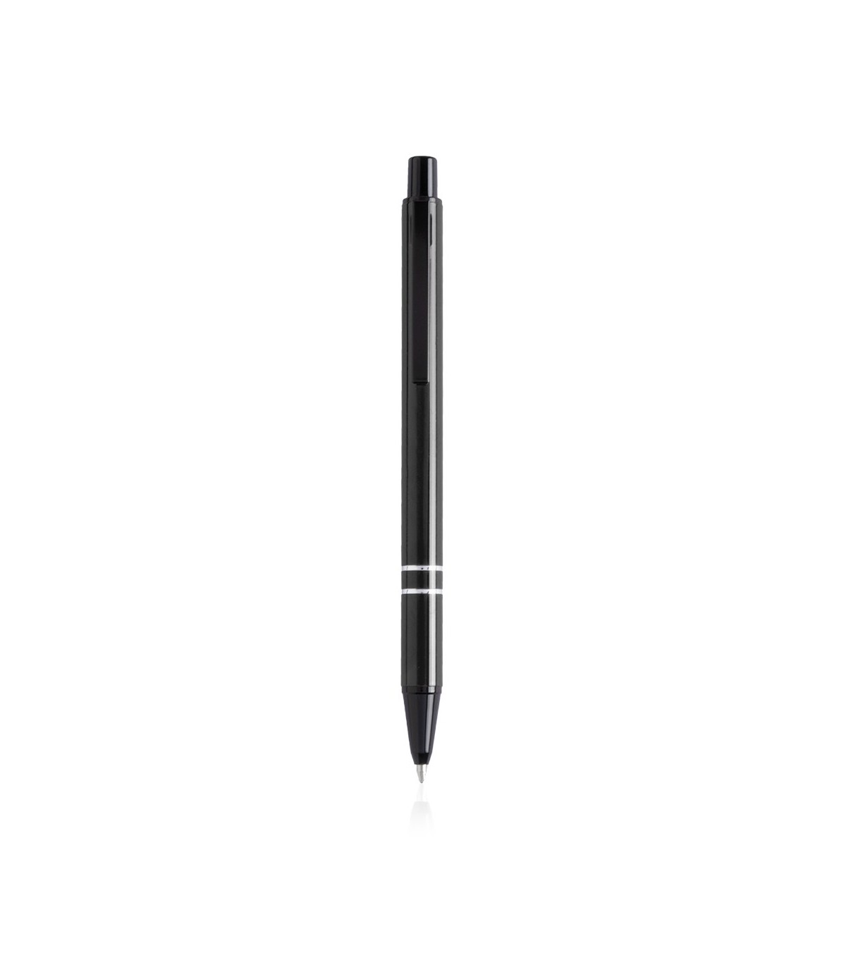 Bolígrafos de aluminio con el cuerpo de color y el clic negro estilo elegante, anillo metálicos en el agarre. 8 colores para personalizar. Bolígrafo Sufit.
