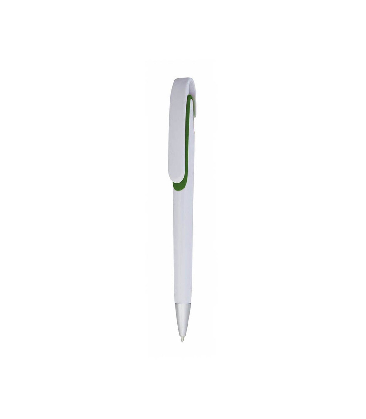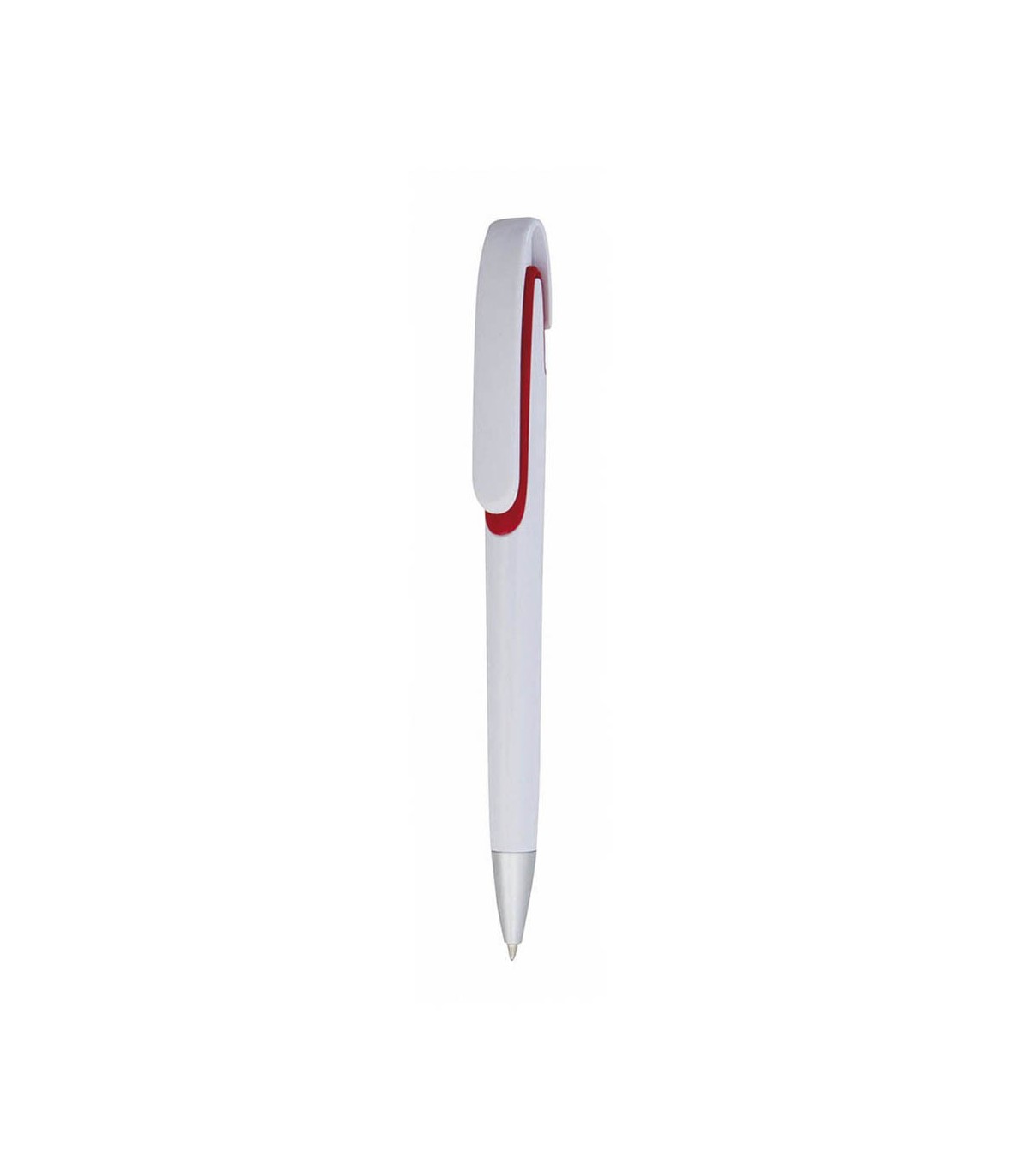 Bolígrafo de apertura con mecanismo pulsador y atrevido diseño tricolor con accesorios en llamativos colores y cuerpo de suave acabado en color blanco sólido. Con original clip curvado a juego y cómoda empuñadura. Escritura en tinta de color azul.