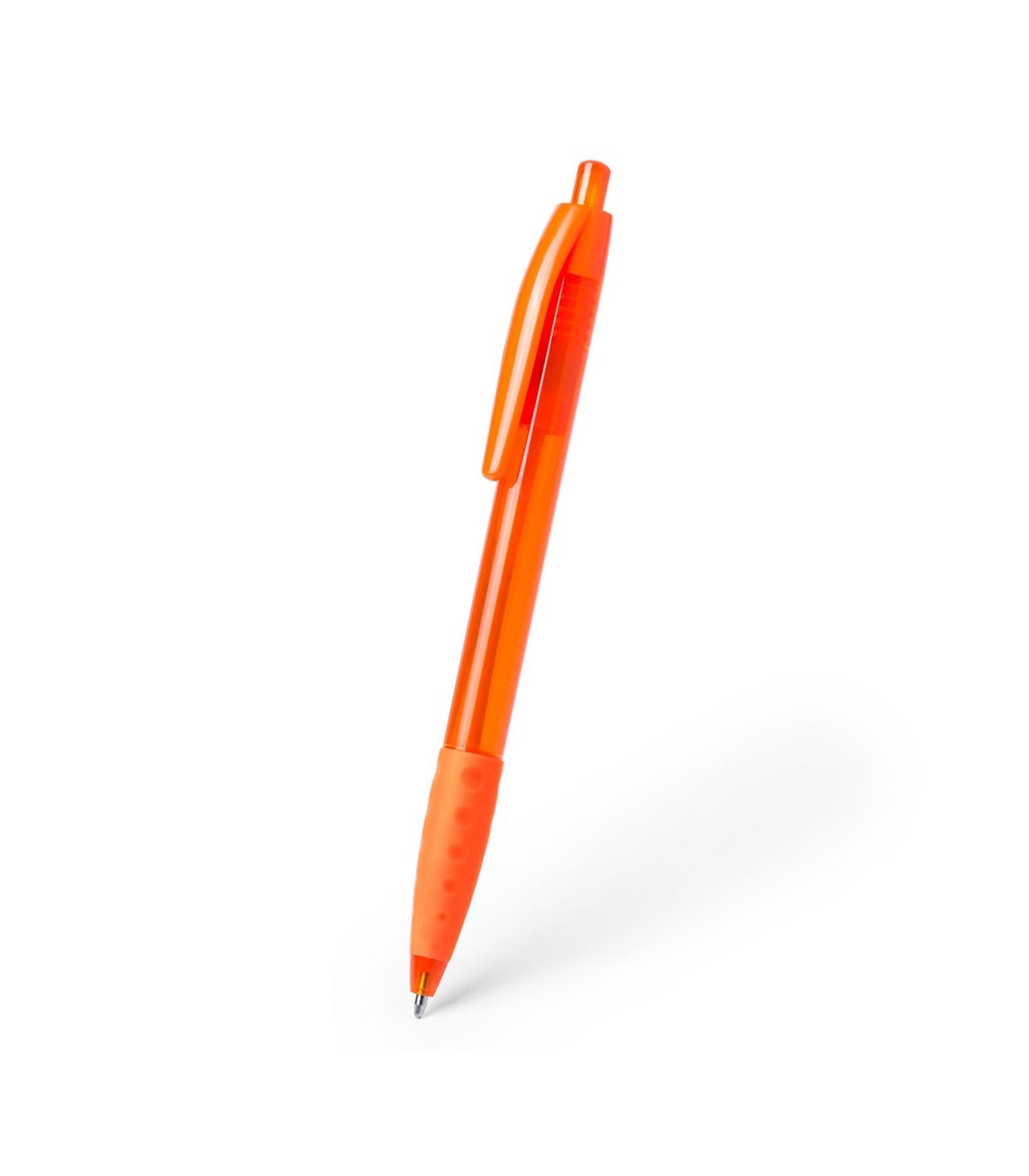 Bolígrafo con mecanismo de pulsador, con cuerpo en color tránslucido en alegres colores. De suave y cómoda empuñadura y con clip a juego. Escritura en tinta de color azul.