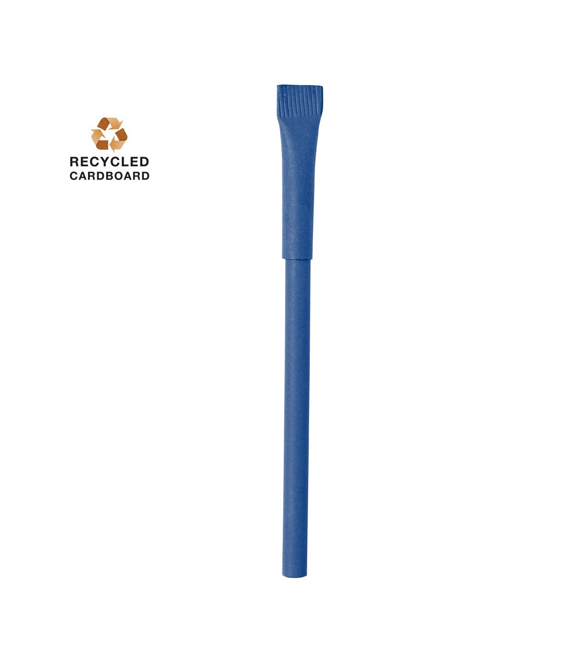 Bolígrafo de fabricación ecológica en cartón reciclado y original capucha a juego. Con tinta azul y disponible en diversa gama de colores nature.