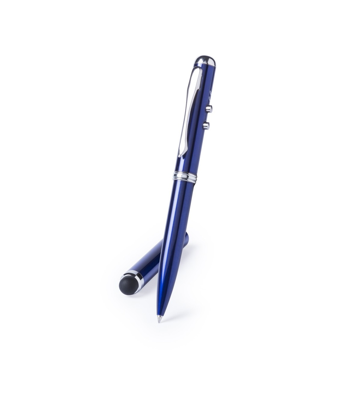 Bolígrafos con puntero led barato para publicidad marcaje de logo, pilas led, colores metálicos y puntero táctil para móviles. Bolígrafo Láser Snarry.