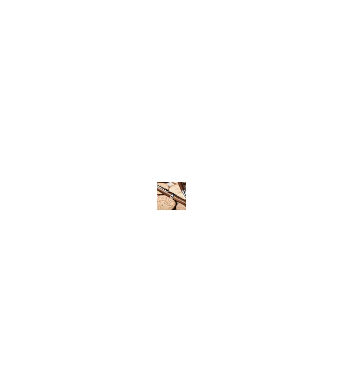Bolígrafo de fabricación ecológica con cuerpo en madera de nogal veteada. De mecanismo giratorio, con clip troquelado. Accesorios en acabado cromado y anilla con patrón decorativo. De cartucho jumbo y con escritura en tinta azul.