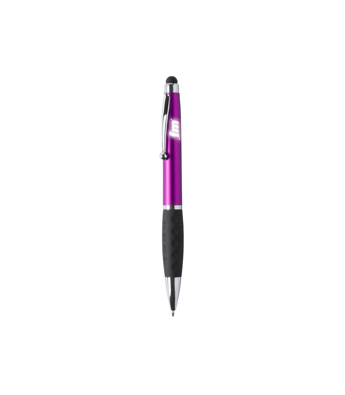 Bolígrafo puntero de mecanismo giratorio con luz led interior y cuerpo especialmente diseñado para marcaje en láser, iluminando así el logotipo. Con suave empuñadura y cuerpo en variada gama de vivos colores. Tinta azul y pilas de botón incluidas.