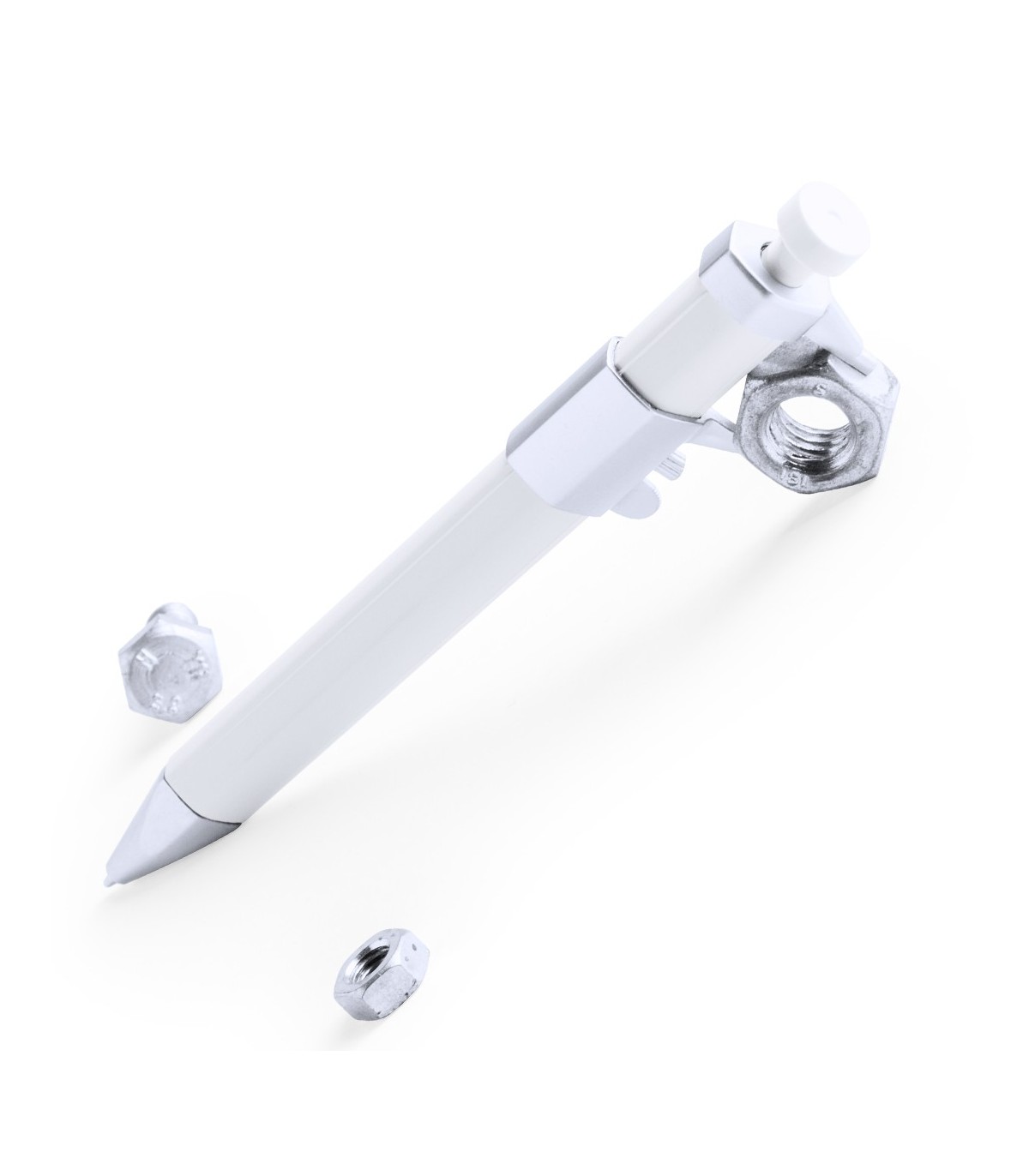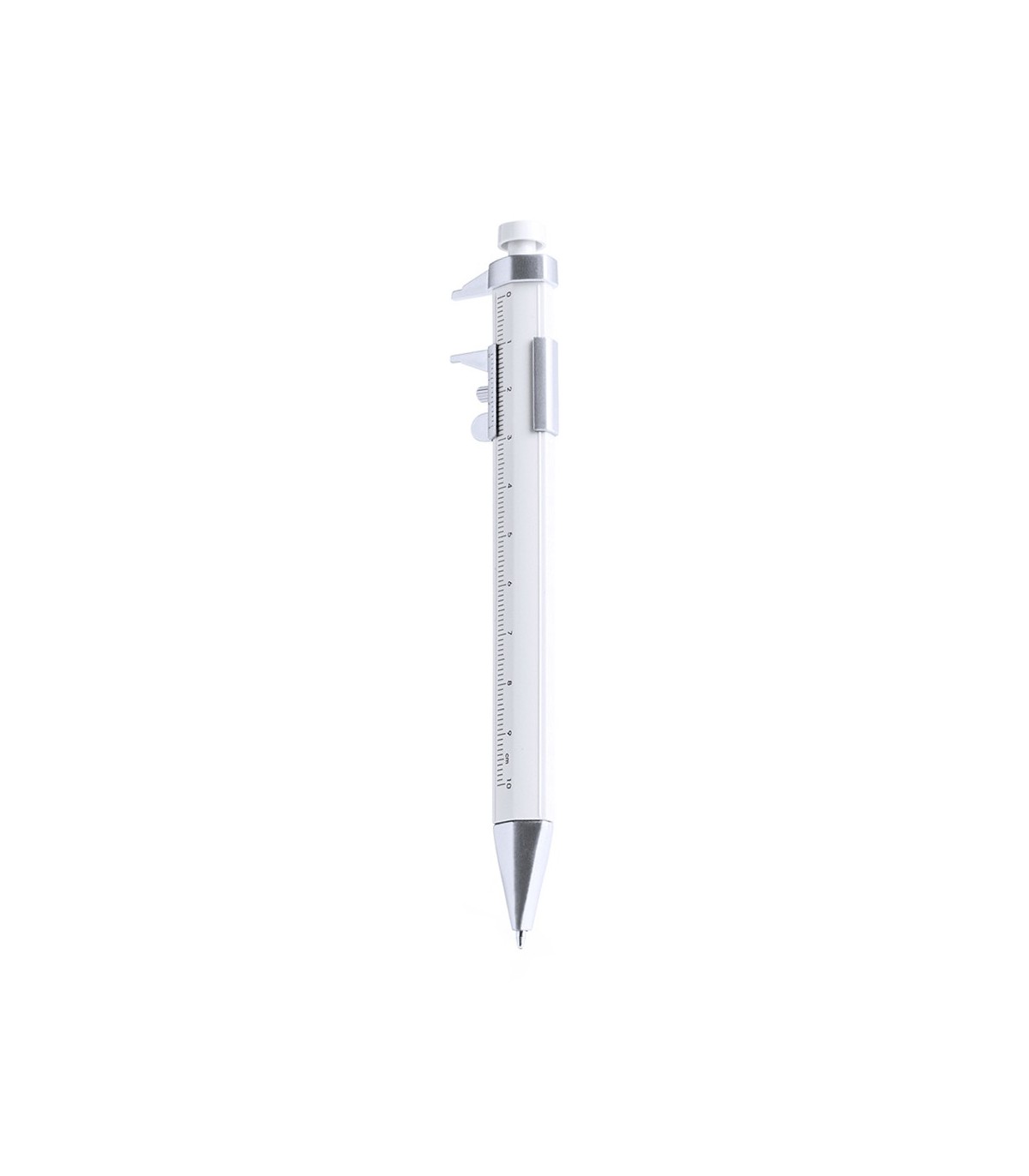 Bolígrafos medidor personalizado con regla y regulador para medir la dimisión de objetos pequeños, multifuncional, color blanco. Bolígrafo Contal.