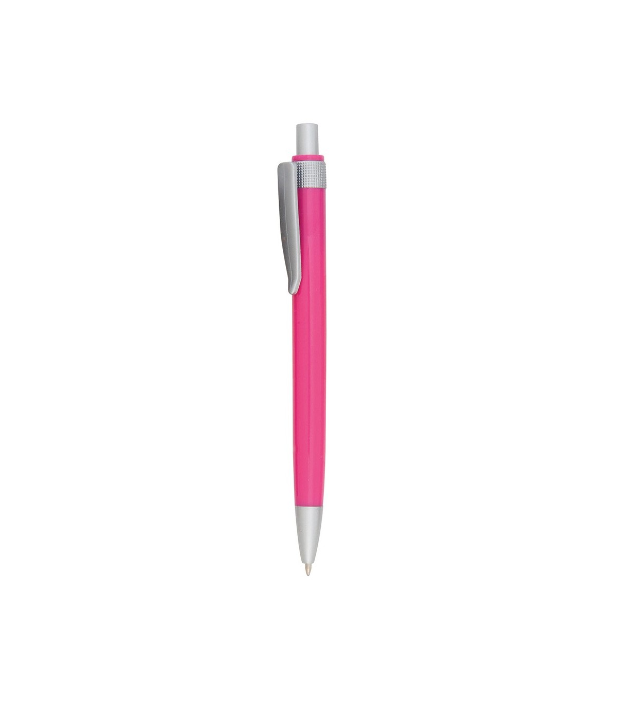 Bolígrafo de apertura con mecanismo pulsador y atrevido diseño bicolor con accesorios en gris plateado y cuerpo de suave acabado en llamativos colores. Con original clip a juego. Escritura en tinta de color azul.