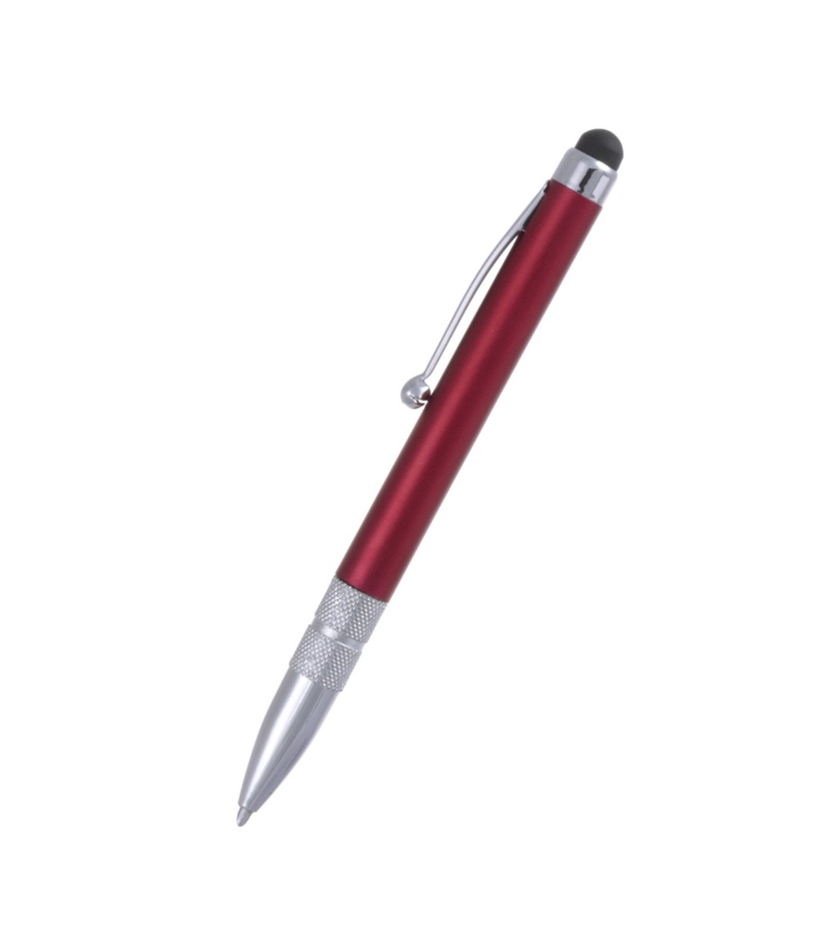 Bolígrafos funcionales con puntero en el cabezal para móviles, clic de aluminio terminaciones en bola, ideal para regalos promocionales. Bolígrafo Puntero Miclas.