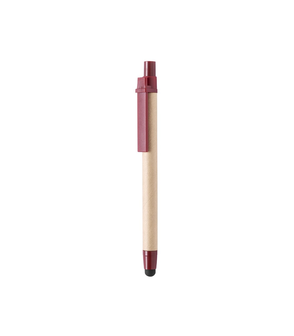Bolígrafos con puntero en la punta en cartón reciclado, clic de plástico, líneas onduladas, para regalaros ecológicos publicitarios. Bolígrafo Puntero Than.