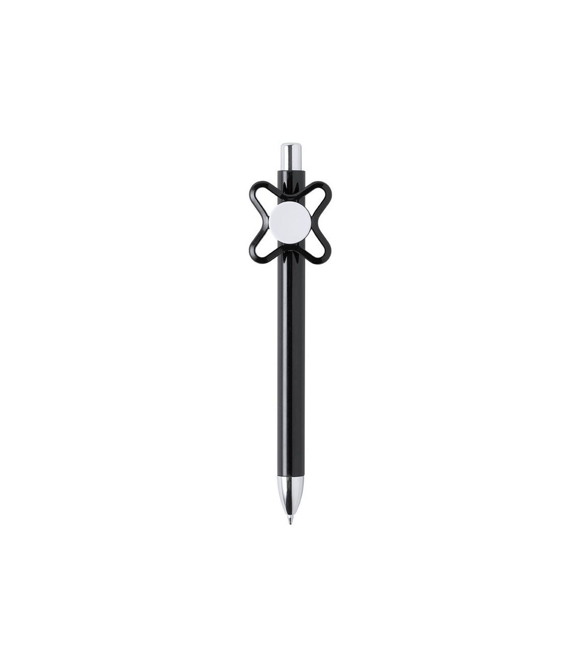 Bolígrafos spinner antiestrés con mecanismo pulsador accesorios plateados en el cuerpo, ideales para personalizar para regalos baratos de empresa.