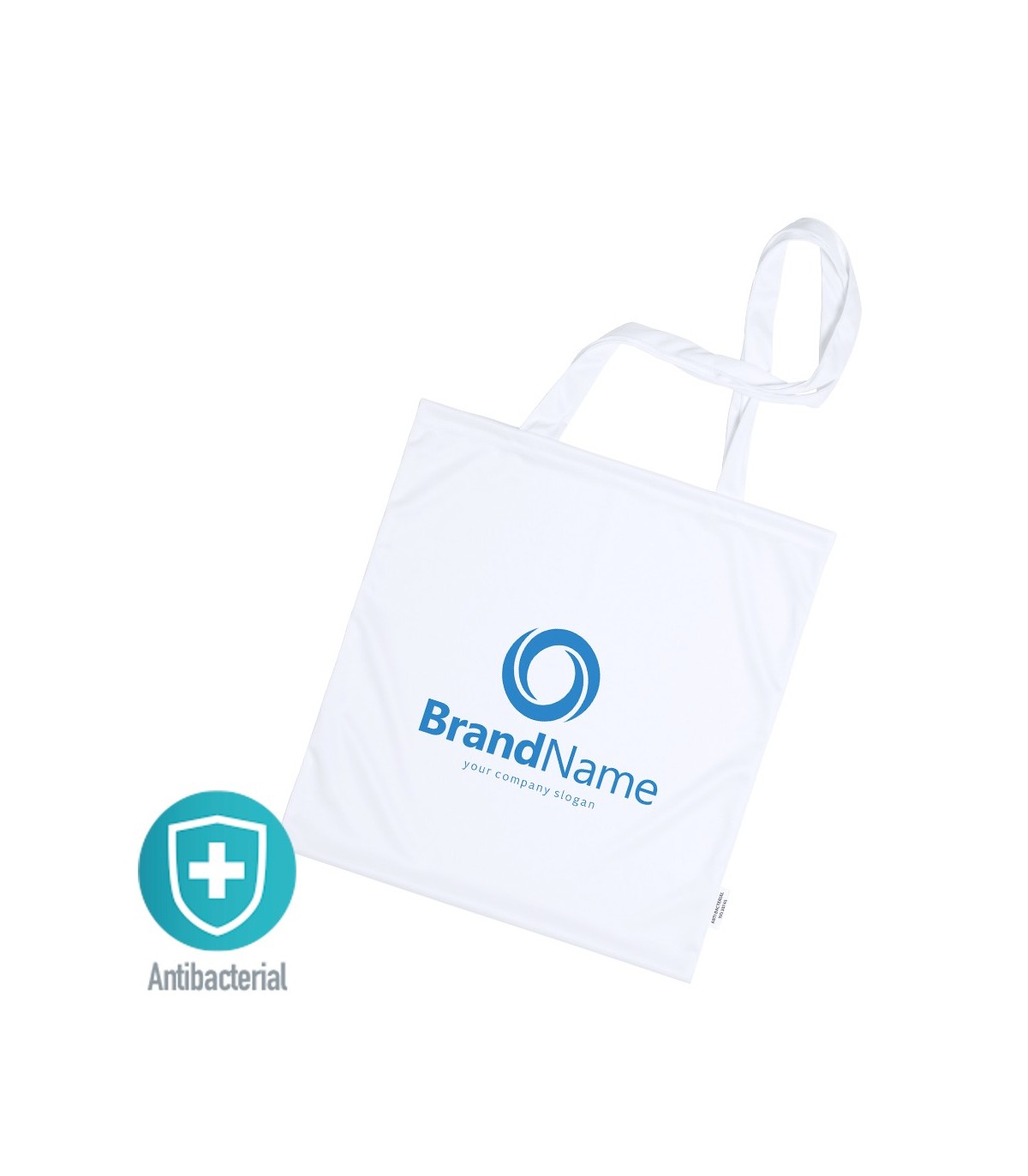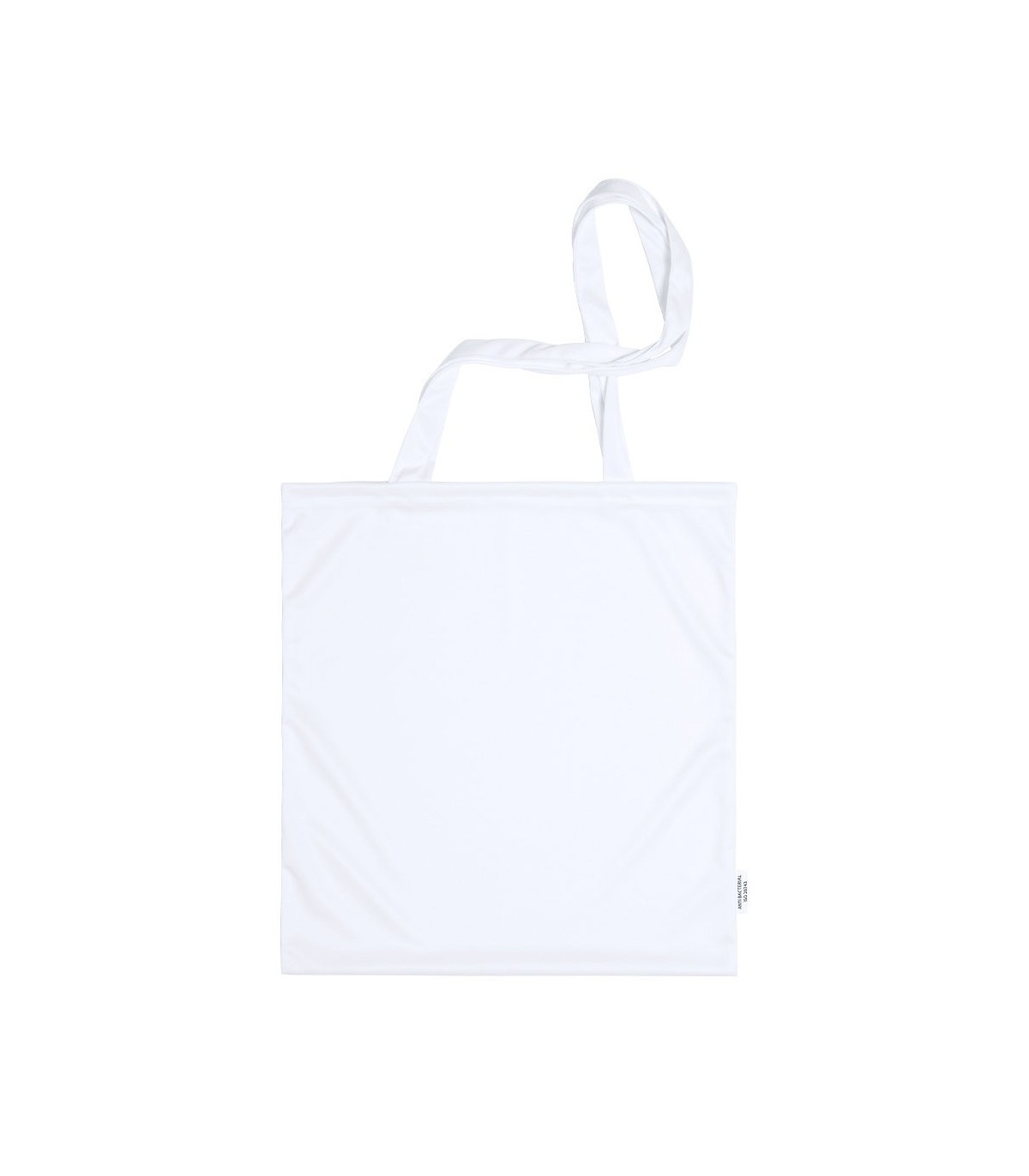 Bolsas antibacteriana de alta calidad en suave poliéster elástico con propiedades hidrófugas, fácil de imprimir. Con etiqueta distintiva antibacteriana. Tamaño 37x41 cm, de acabado cosido y con asas largas. Con capacidad de almacenaje hasta 7kg de peso. Los productos con tratamientos antibacterianos son capaces de reducir drásticamente las cargas bacterianas presentes en las superficies de los materiales, gracias a la incorporación de agentes microbianos permanentes estáticos, con alta efectividad para inhibir y prevenir la contaminación bacteriana. Artículo de acuerdo al estándar ISO 20743, que determina la actividad antibacteriana en productos textiles, lo que permite conocer la efectividad de inhibición microbiana que tienen los aditivos sobre los objetos tratados mediante una evaluación cuantitativa.