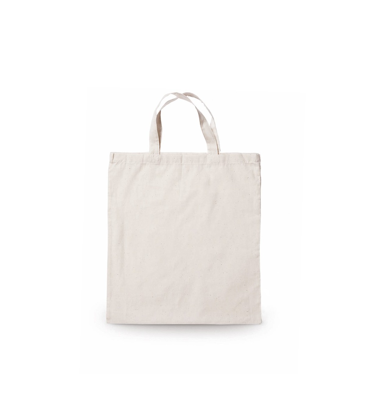 Bolsas en material 100% algodón con acabado en color natural. Con asas cortas de 35cm y acabado cosido. Con capacidad de almacenaje de hasta 7kg de peso.