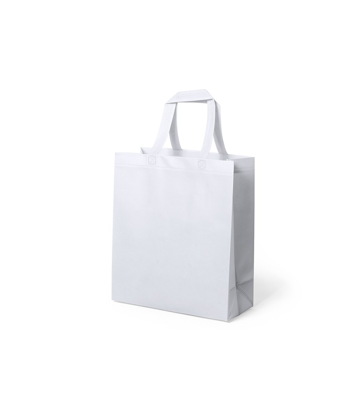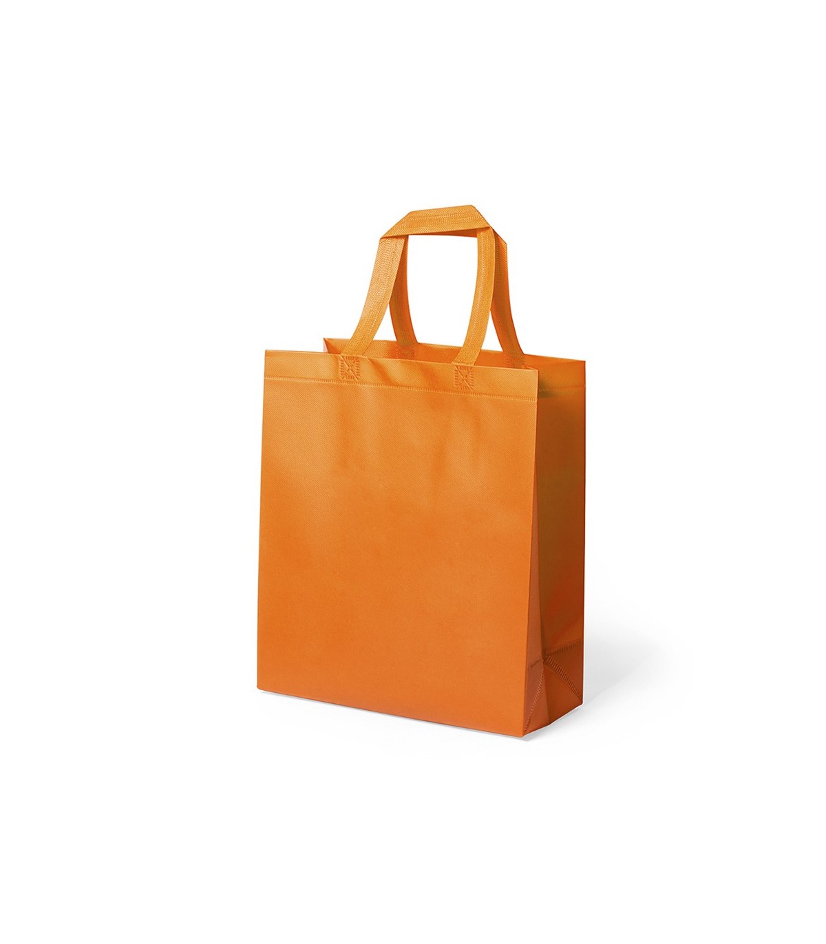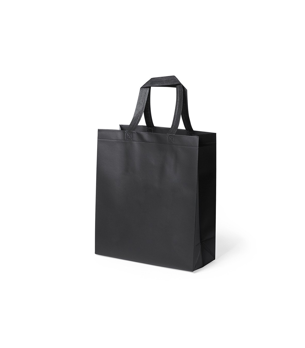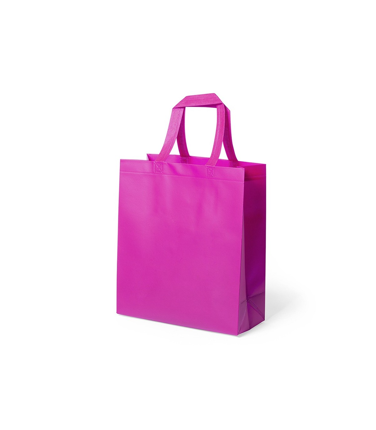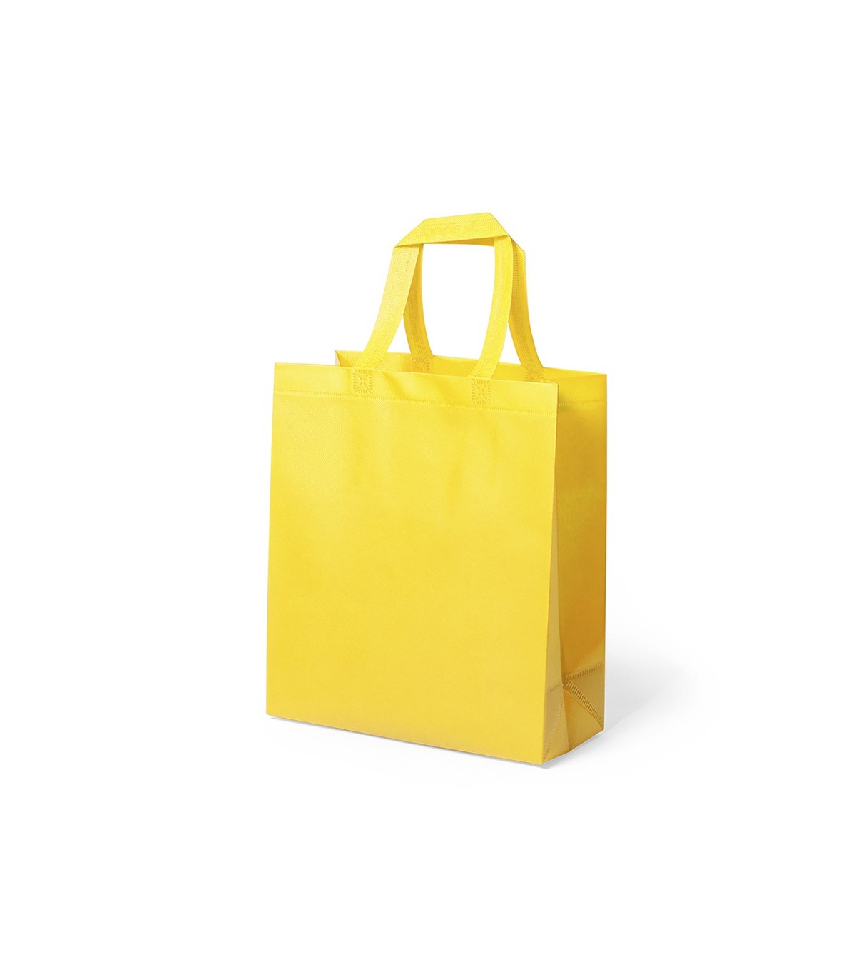 Bolsas de alta calidad en non-woven laminado de 110g/m², en diferentes colores llamativos para personalizar mates. Con asas reforzadas cortas de 35cm, fuelle y acabado termosellado. Con capacidad de almacenaje de hasta 15kg de peso.