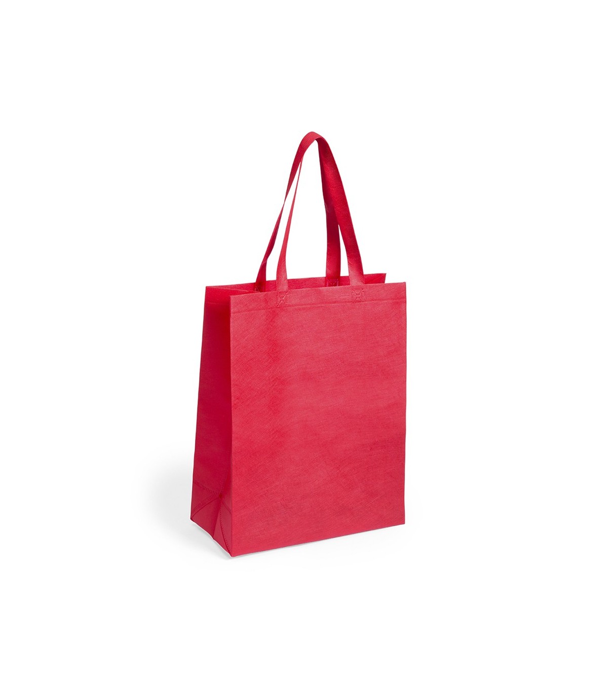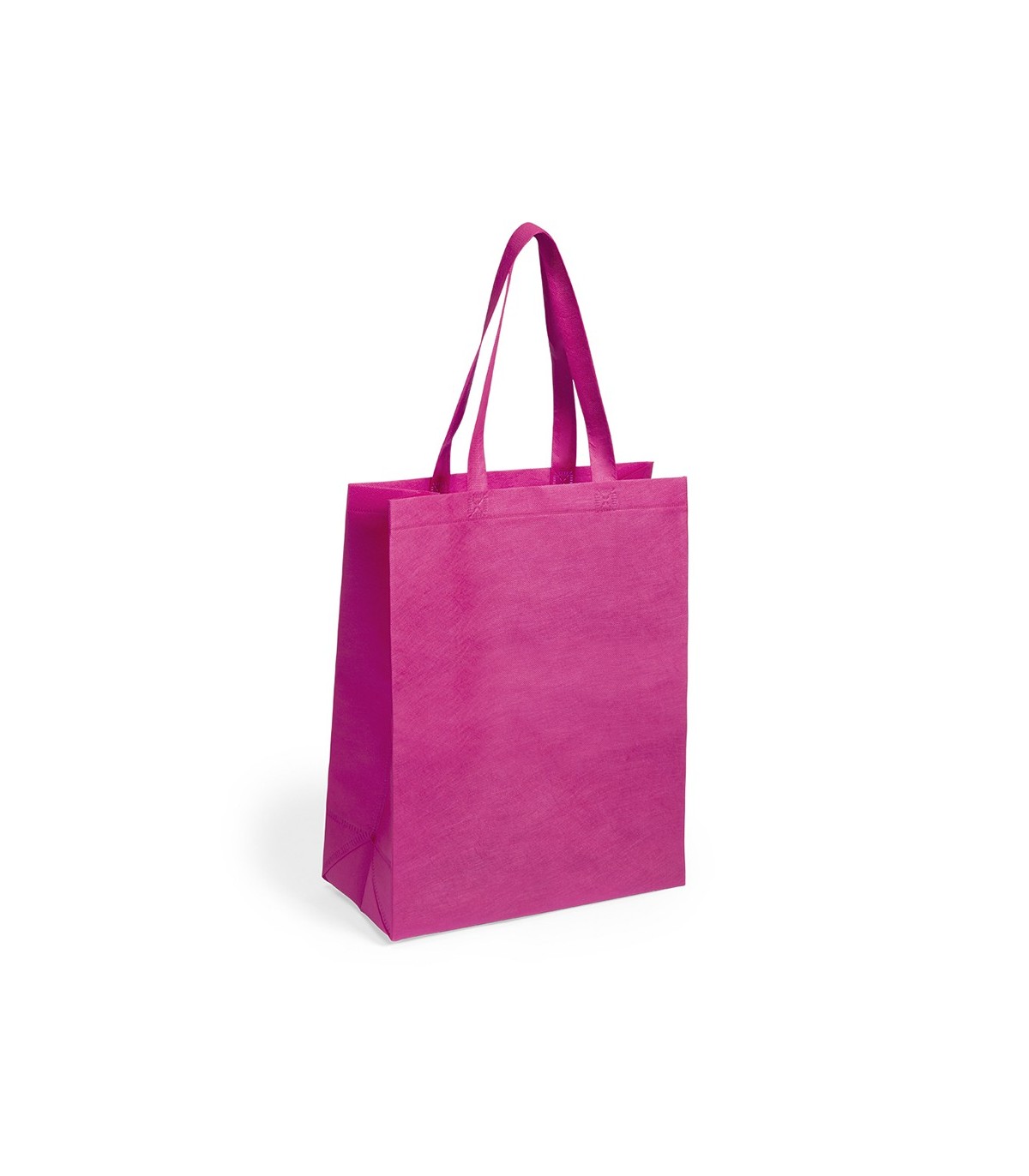 Bolsas en non-woven de 80g/m², en diferentes colores llamativos para personalizar. Con asas medianas de 50cm reforzadas, fuelle y acabado termosellado. Con capacidad de almacenaje de hasta 9kg de peso.