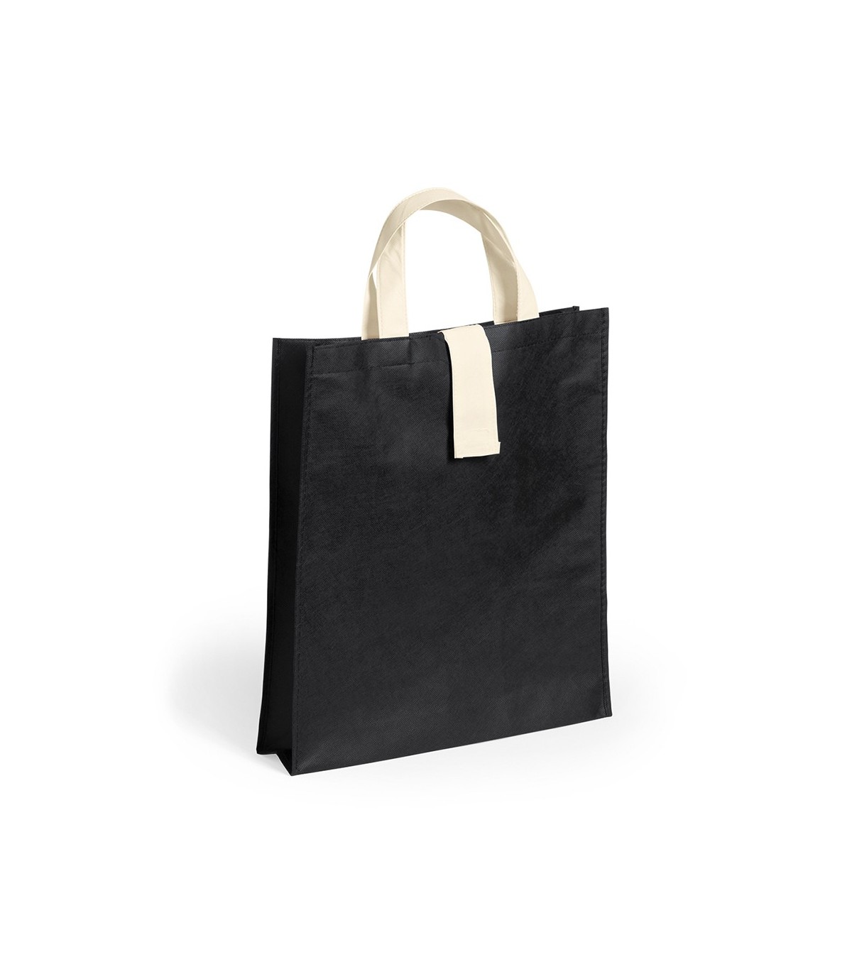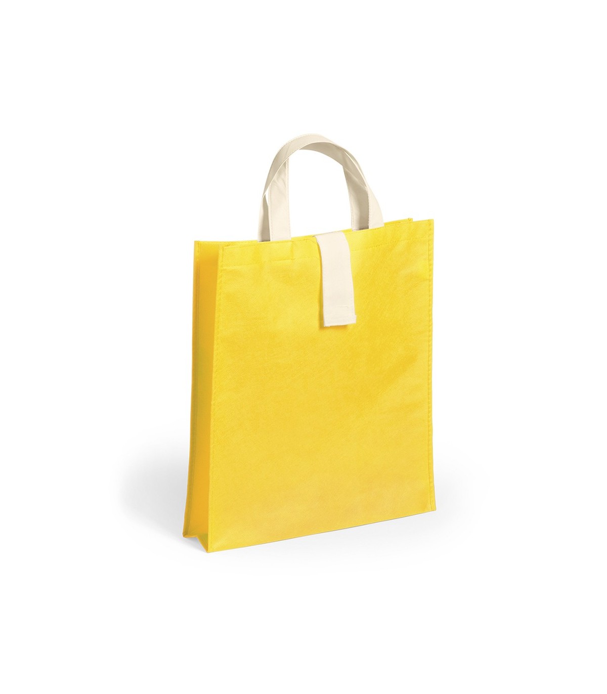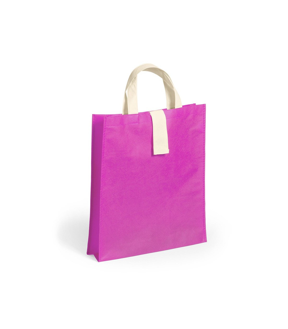 Bolsas plegables en non-woven de 80 g/m² en diferentes colores llamativos para personalizar. Con asas cortas en color natural de 37cm, cierre de velcro en color natural y acabado cosido. Plegado de pequeño tamaño y Con capacidad de almacenaje de hasta 8kg de peso.
