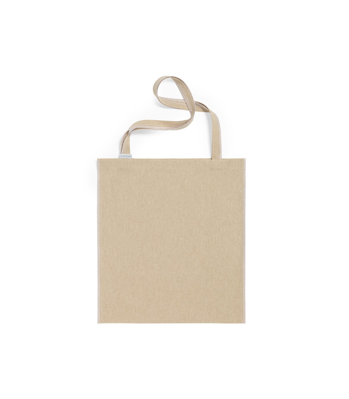 Bolsas en resistente material 100% algodón reciclado GRS de 140g/m², con acabado en color tierra y terminación con costura exterior visible en color a contraste, a juego con etiqueta distintiva. De asas largas de 70cm y acabado cosido. Resistencia hasta 9kg de peso. Certificación GRS (Global Recycled Standard / Estándar de Reciclaje Global), que garantiza el origen reciclado del material usado para fabricar el producto.