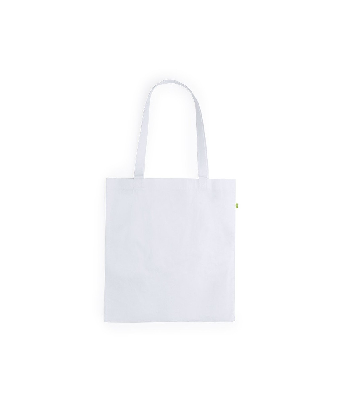 Originales bolsas para la compra fabricadas en bambú con asas largas y terminaciones cosidas para mayor resistencias, serigrafiadas para regalos promocionales.