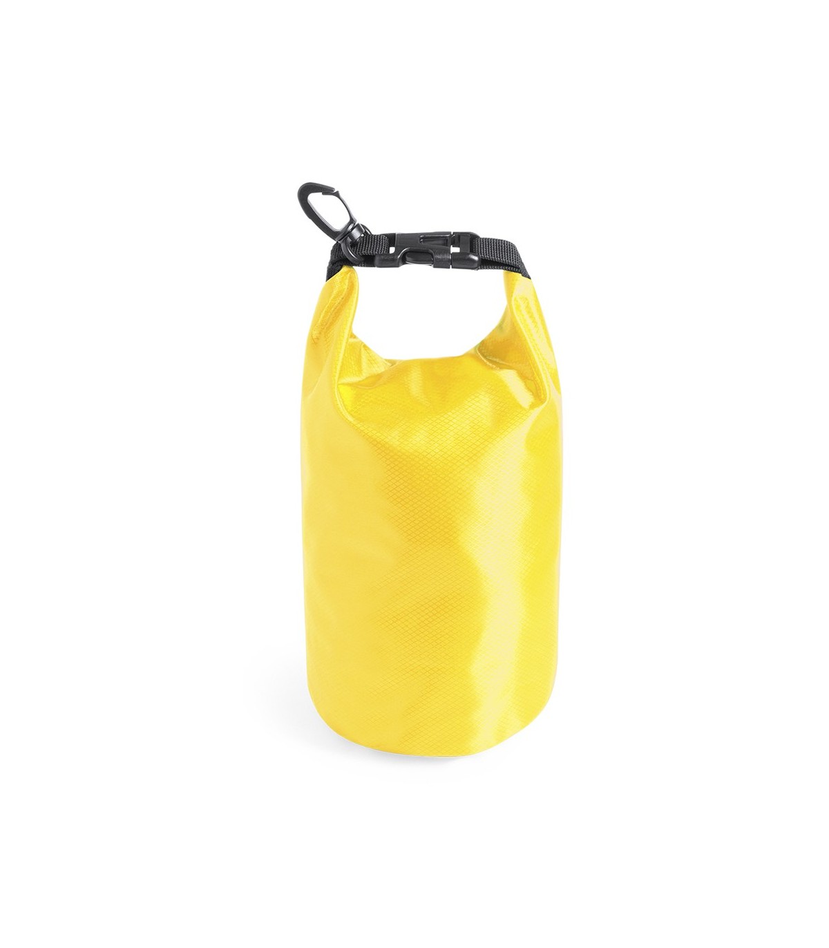 Bolsa impermeable en suave y resistente ripstop. Con cierre estanco de seguridad y capacidad de 2,3l. Asa con hebilla de cierre y mosquetón para transporte incluido. Disponible en variada gama de colores de acabado brillo, con accesorios de ajuste en color negro.