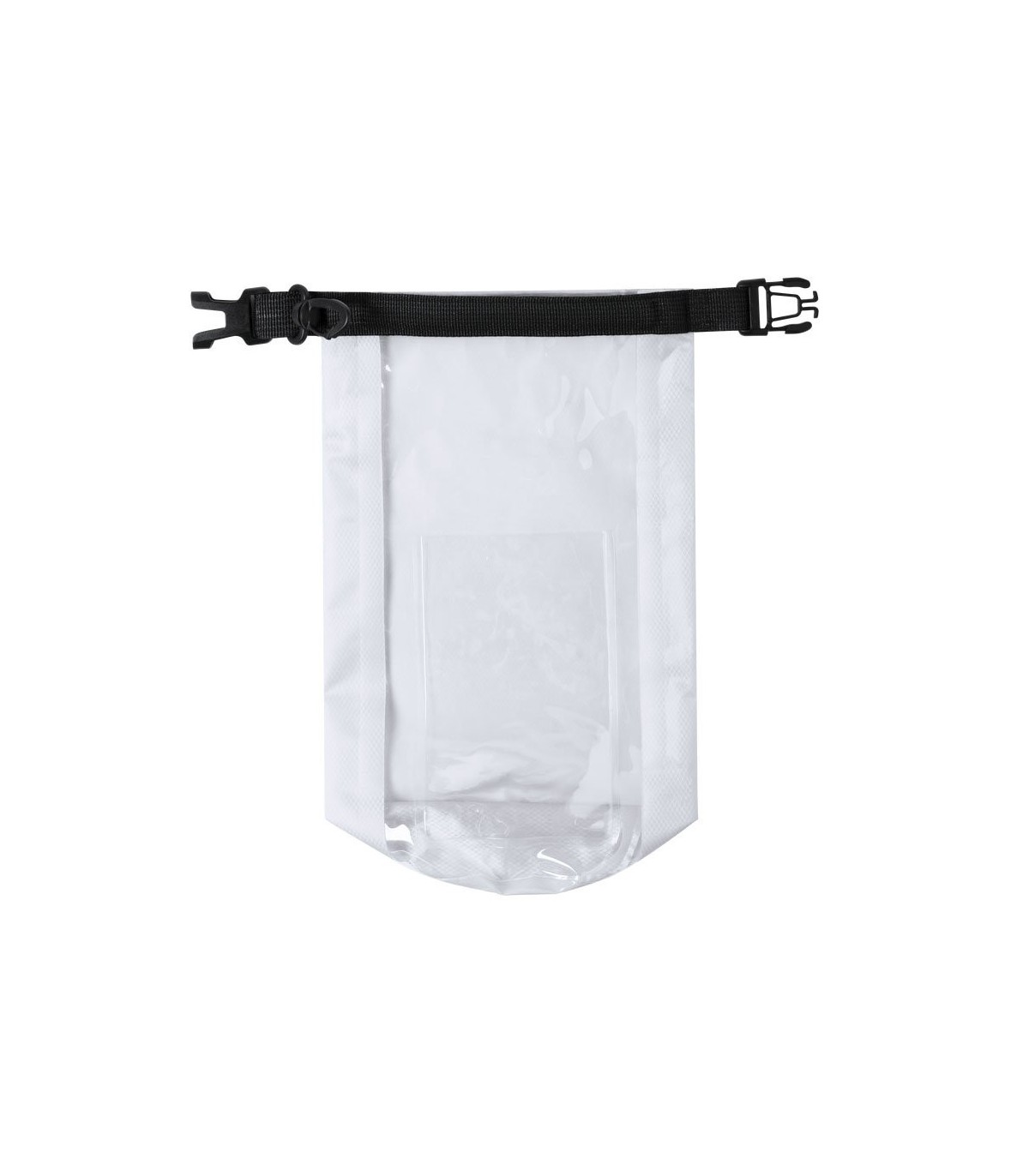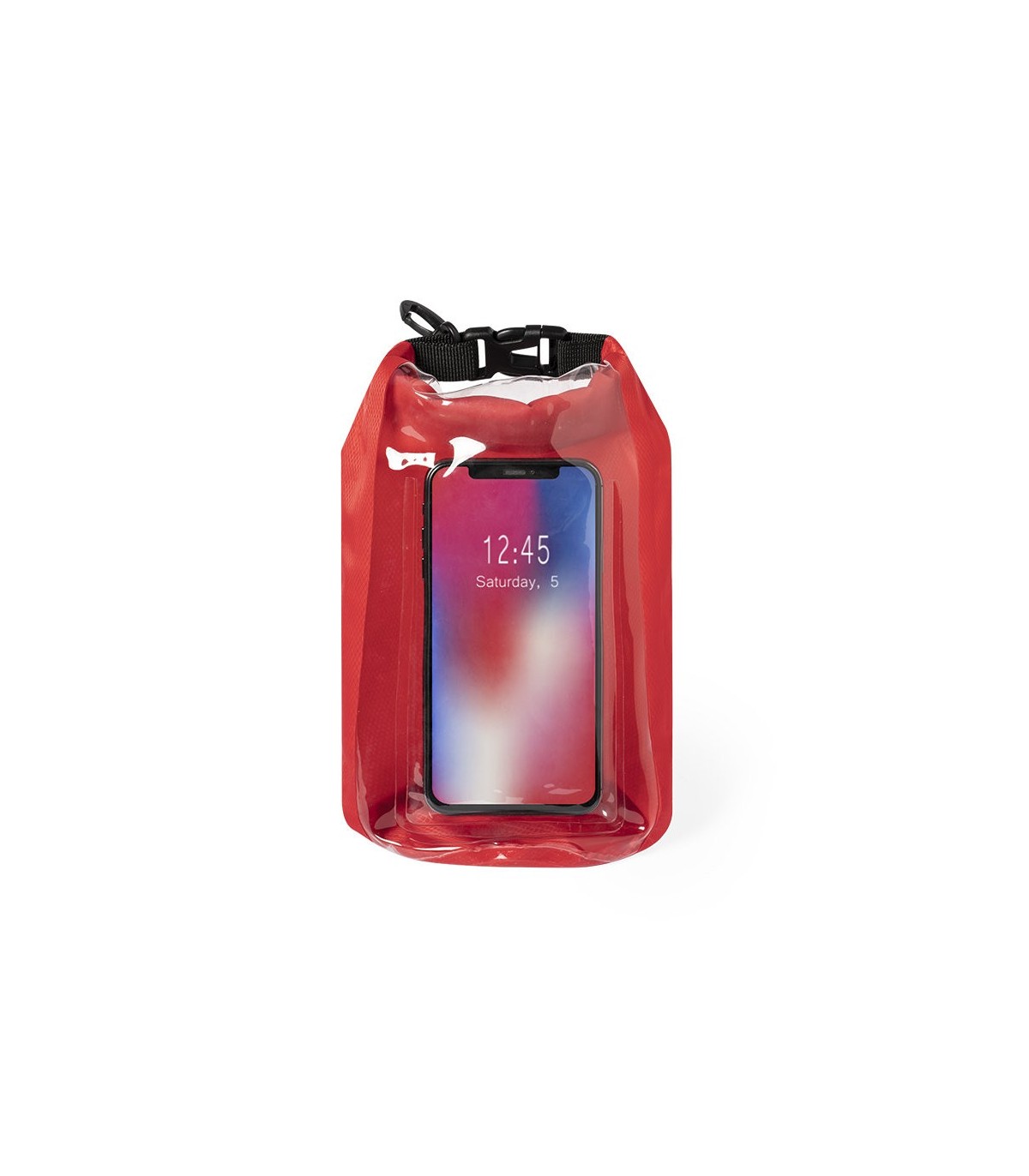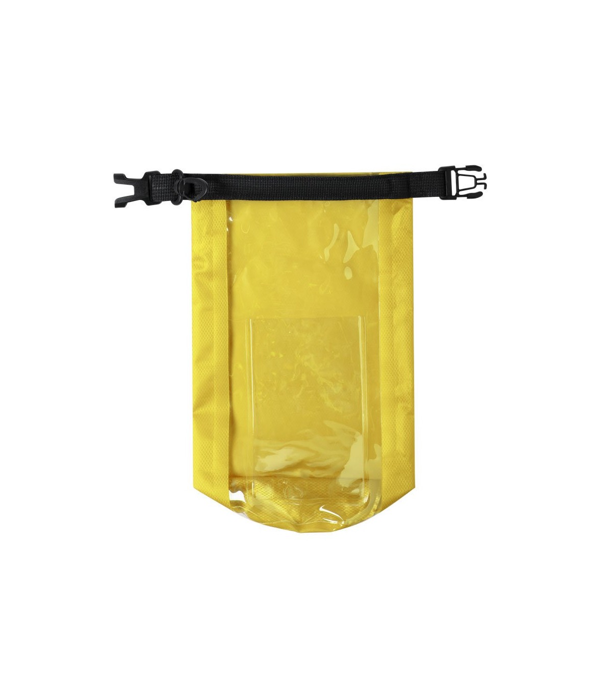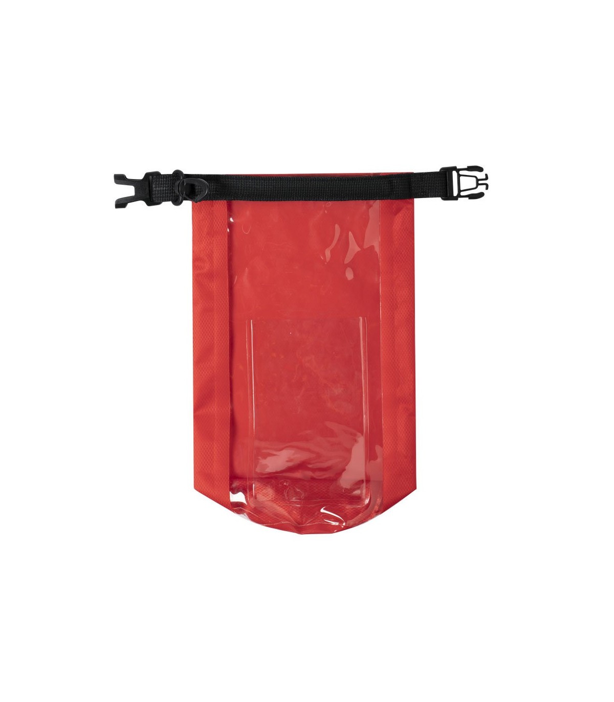 Bolsa impermeable en suave y resistente ripstop con cierre estanco de seguridad y 2l de capacidad. Ventana transparente en un lado de la bolsa con superficie táctil para usar smartphone. Asa con hebilla de cierre y mosquetón para transporte incluido. Disponible en variada gama de colores de acabado brillo, con accesorios de ajuste en color negro.
