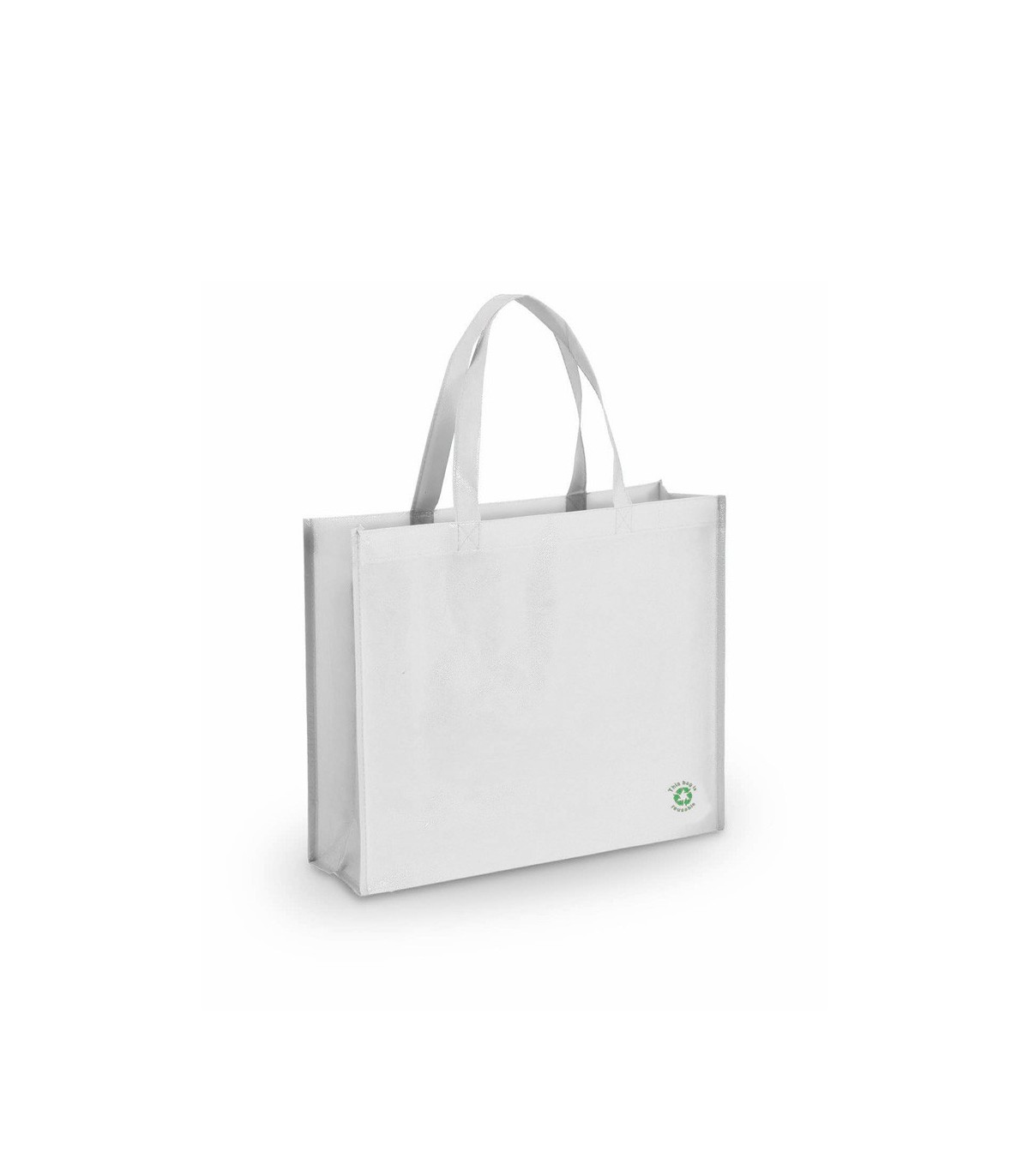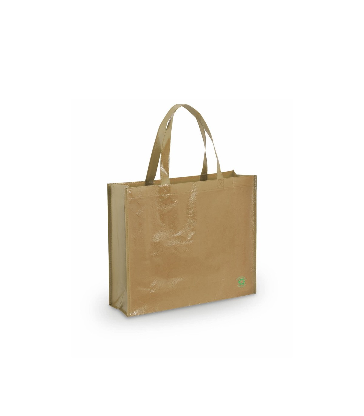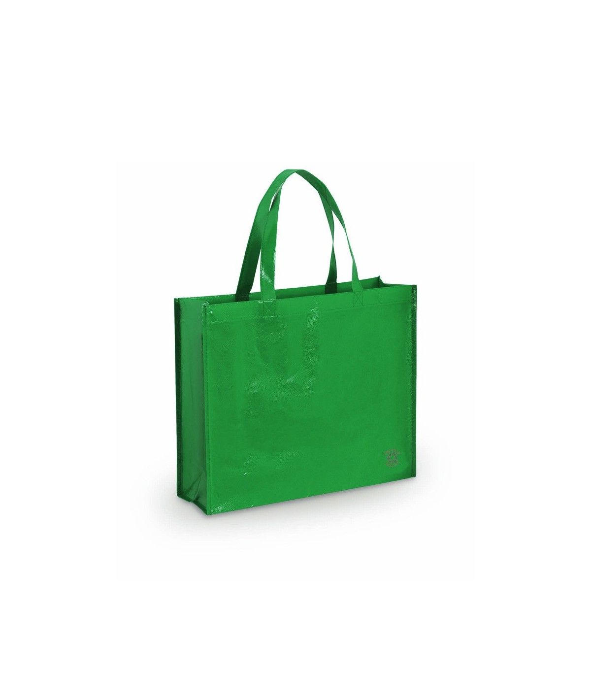 Bolsas en non-woven laminado de acabado brillante. en diferentes colores llamativos para personalizar, con asas medianas reforzada de 48 cm de largo. De acabado cosido, con fuelles y ribetes reforzados.