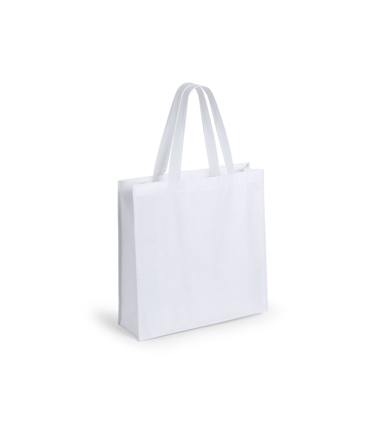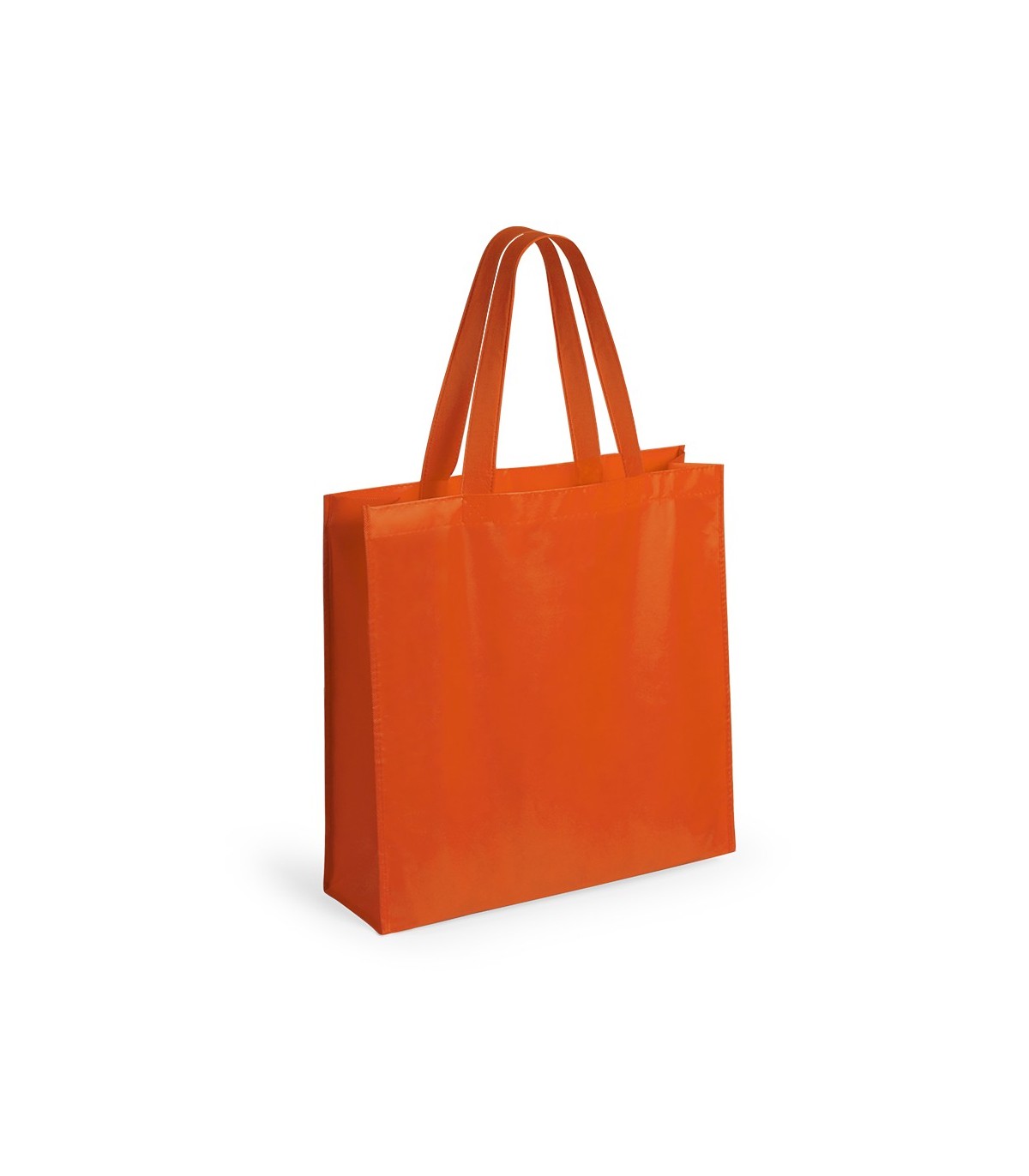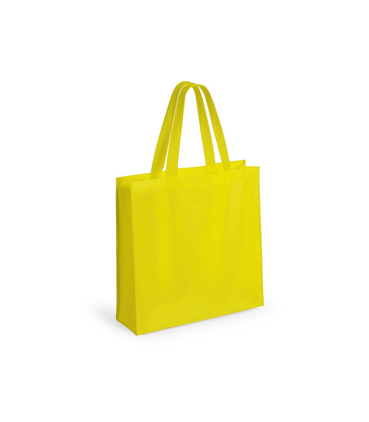 Bolsas en non-woven laminado de acabado mate de 110g/m², en diferentes colores llamativos para personalizar. Con asas reforzadas medianas de 55cm, fuelle y acabado cosido. Con capacidad de almacenaje de hasta 9kg de peso.