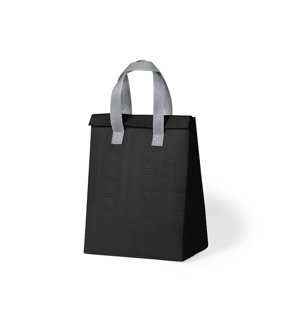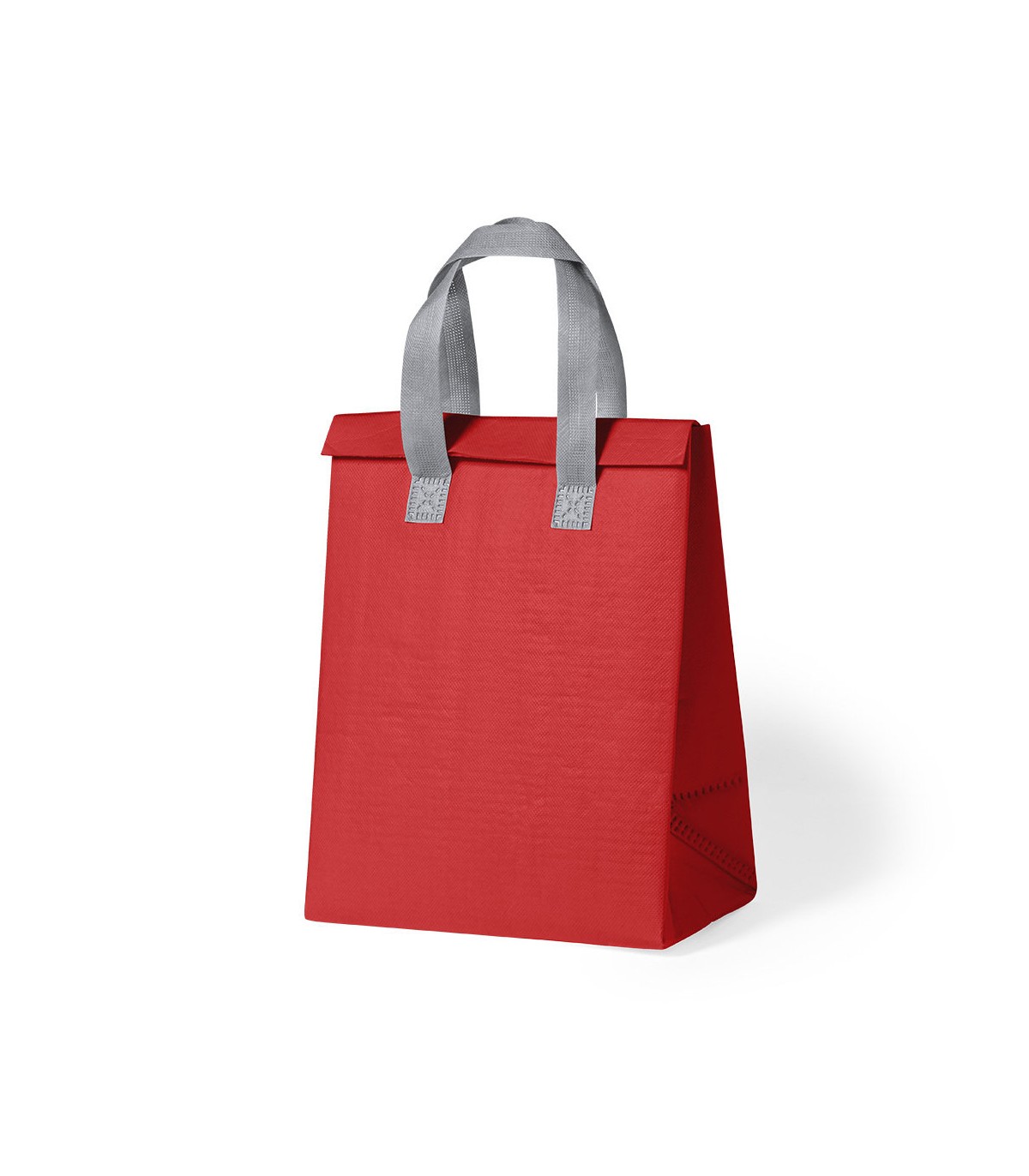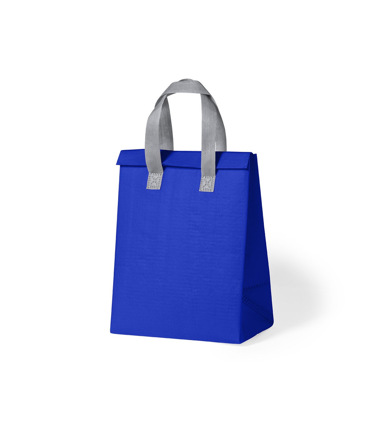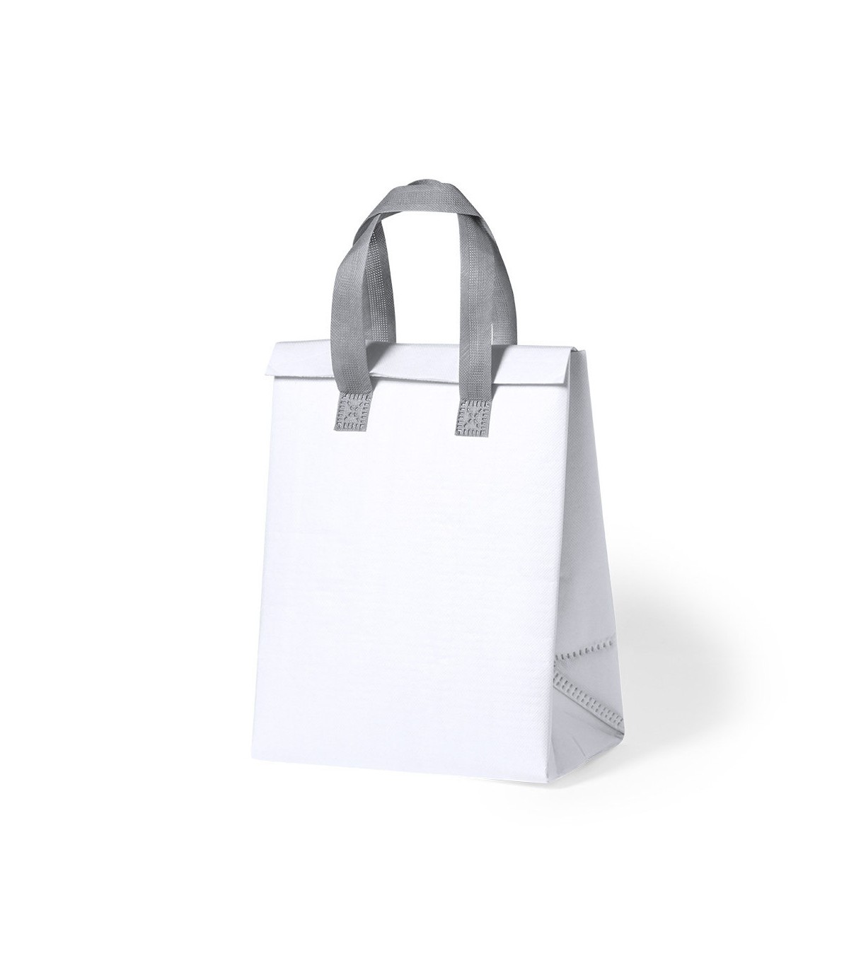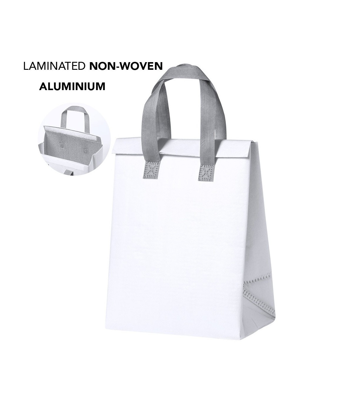 Bolsas nevera en non-woven laminado. Compartimento principal con cierre de velcro e interior isotermo de aluminio. De acabado termosellado, con fuelle y asas reforzadas.
