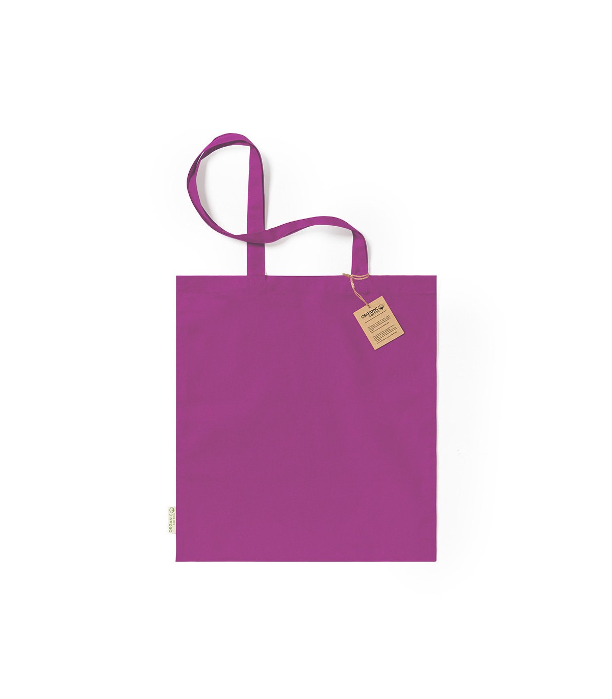 Bolsas hechas en algodón orgánico de 140g/m². Personalizadas con tu logo para regalos de empresa. Con asas largas reforzadas de 70 cm y disponible en variada gama de colores.