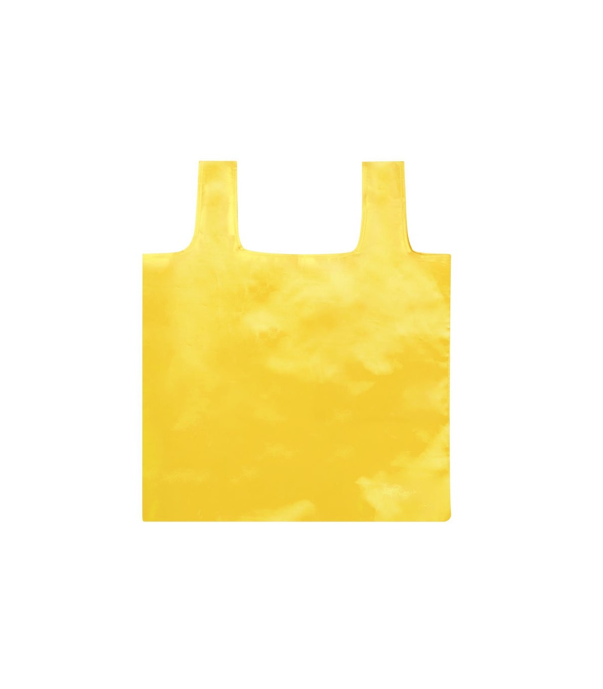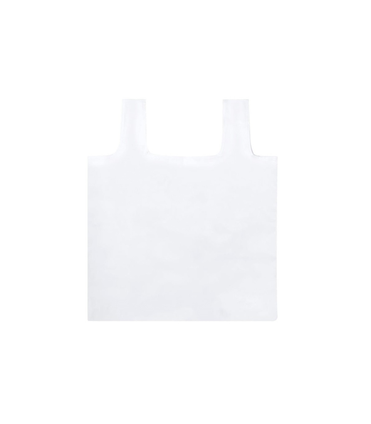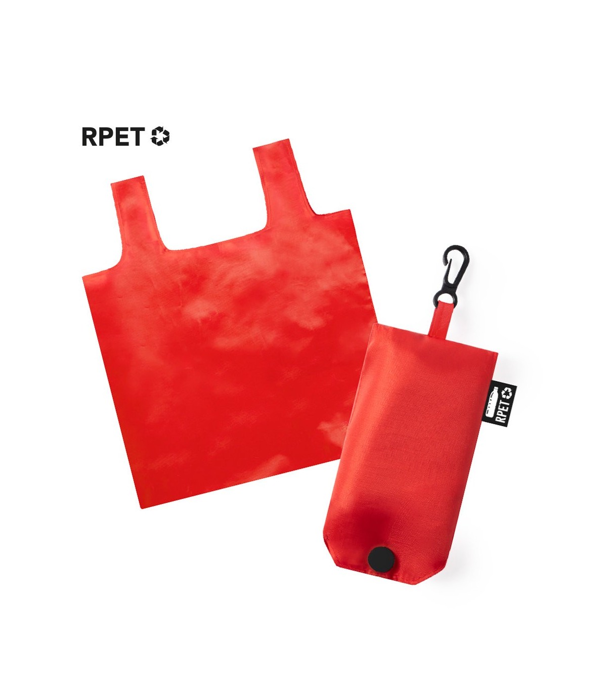 Bolsa plegable en suave poliéster RPET, elaborado a partir de plástico reciclado, para así fomentar la reutilización de residuos plásticos y ayudar a la sostenibilidad del planeta. Acabado cosido y plegado de pequeño tamaño para fácil transporte. Con cierre de botón y mosquetón de enganche. Distintivo RPET en etiqueta lateral, disponible en variada gama de colores (color blanco especialmente fabricado para impresión en sublimación).