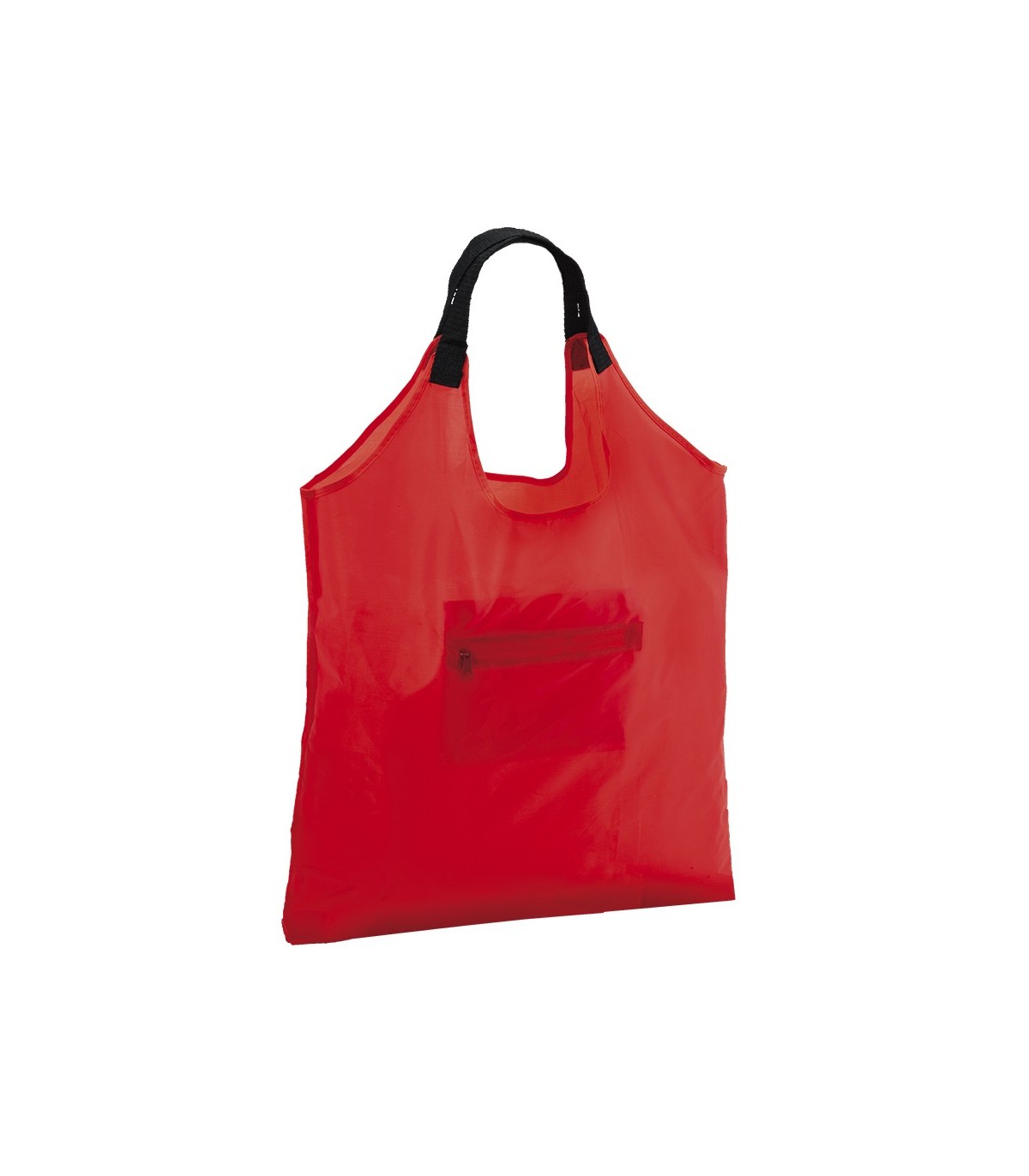 Bolsas plegables en resistente y suave poliéster 190T en variados y vivos colores. Con asa reforzada en nylon y sistema de plegado usando el bolsillo frontal con cremallera a juego. Con fuelle, de acabado cosido y plegado de pequeño tamaño.