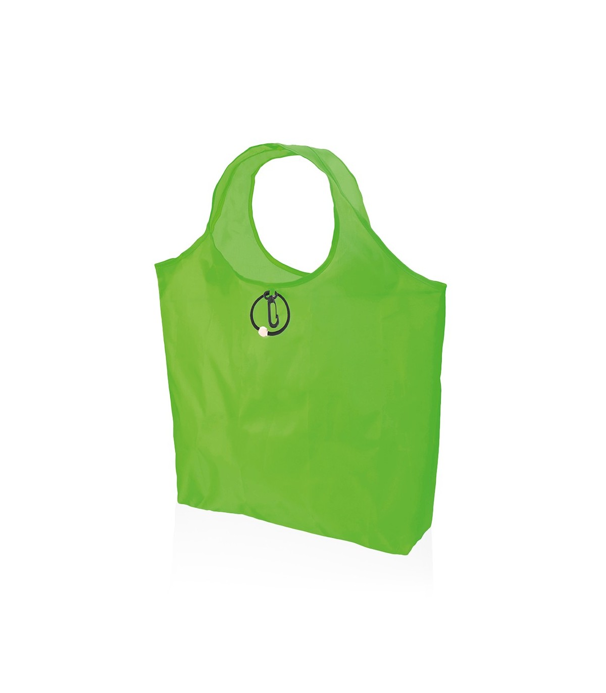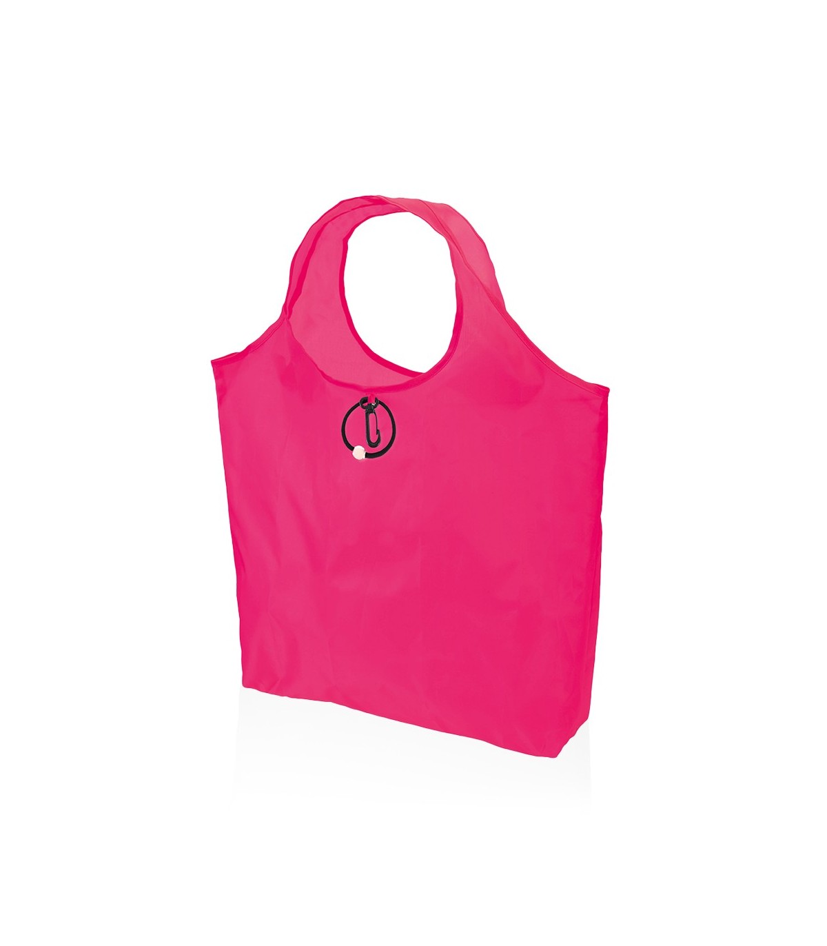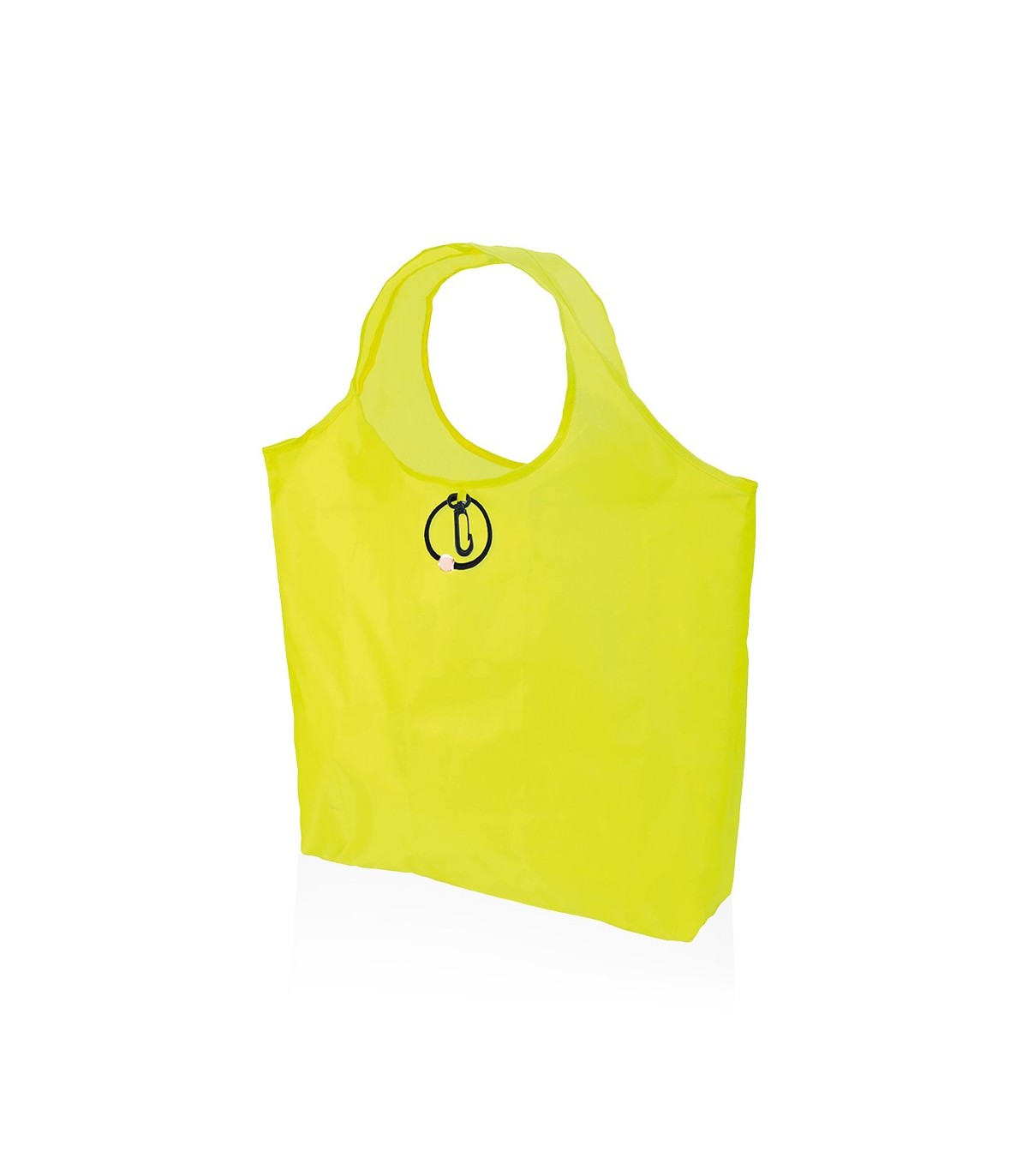 Bolsas plegables en resistente y suave poliéster 190T en vivos colores fluorescentes. Con gran asa y goma para plegado con accesorio de ajuste. De acabado cosido y plegado de pequeño tamaño, con fuelle y mosquetón de transporte.