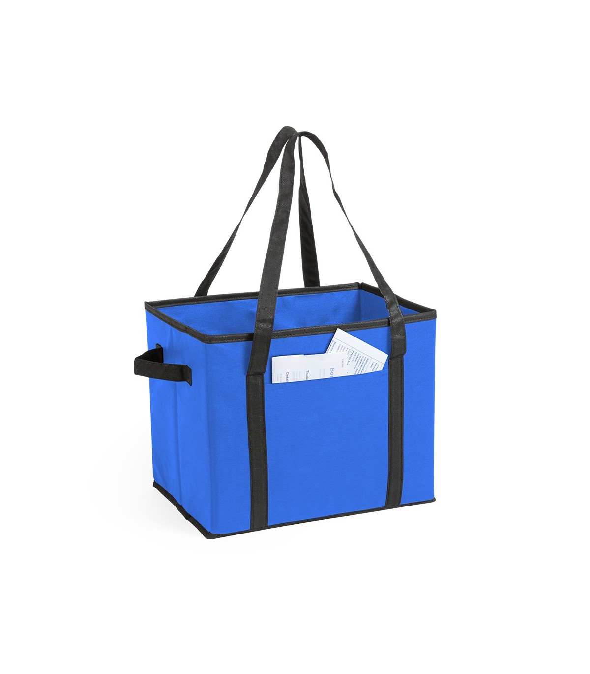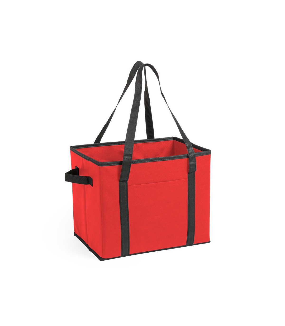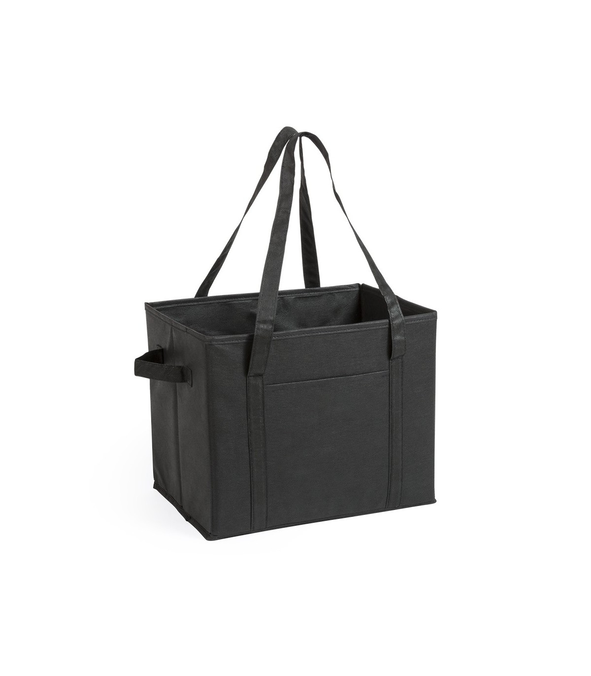 Organizador plegable para el maletero del coche en resistente non-woven de vivos colores. Con asas de transporte reforzadas, asa lateral, bolsillo frontal y base rígida para un firme ajuste.