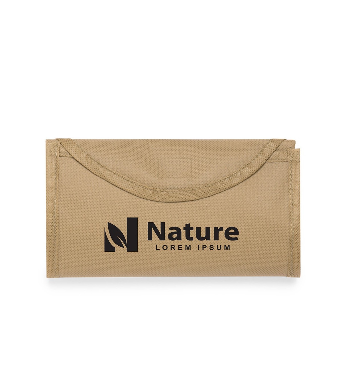 Bolsas plegable y reutilizable publicitarias en non-woven de 80g/m². Tamaño 38x42 cm, de acabado termosellado y con asas medianas reforzadas.