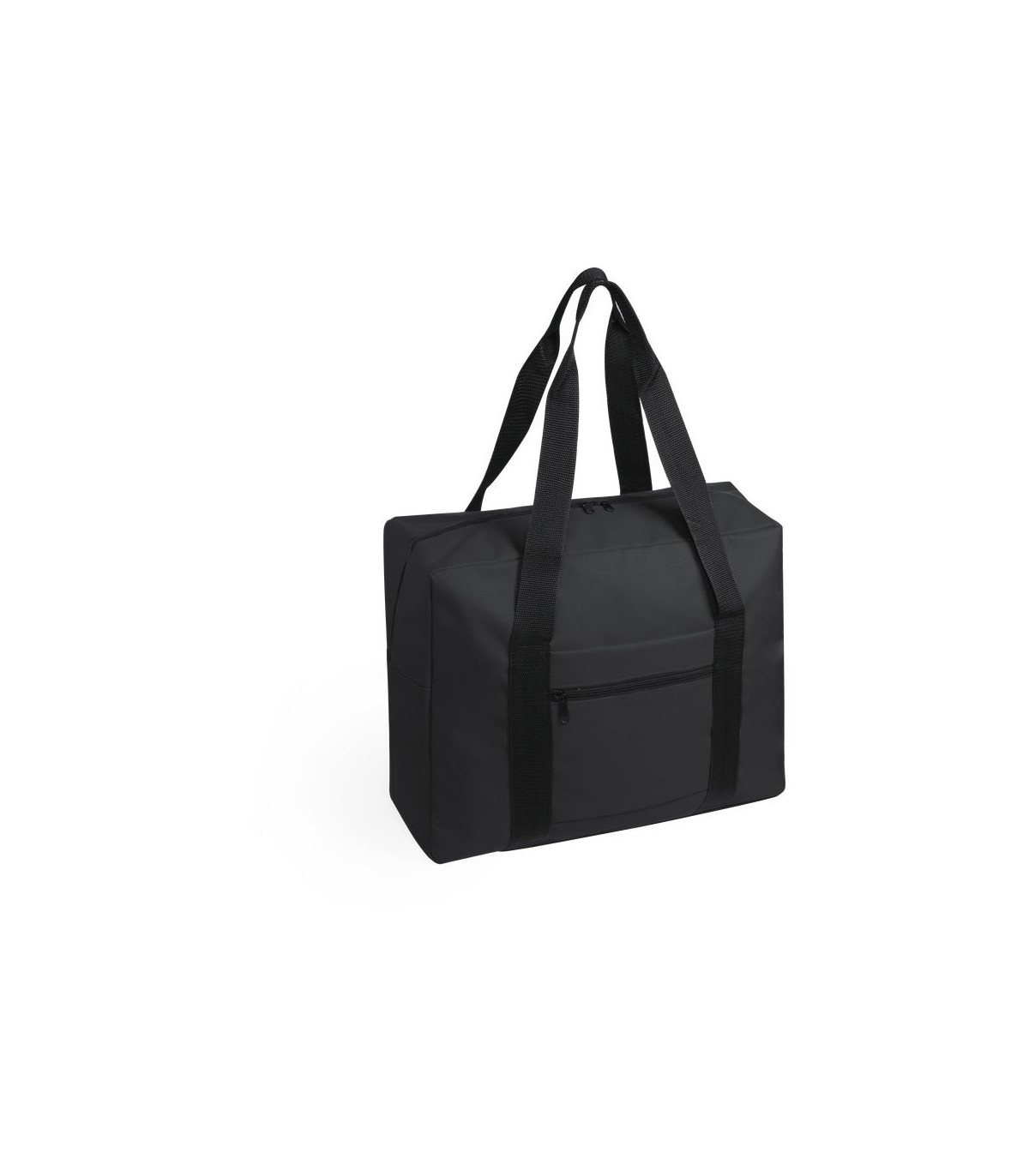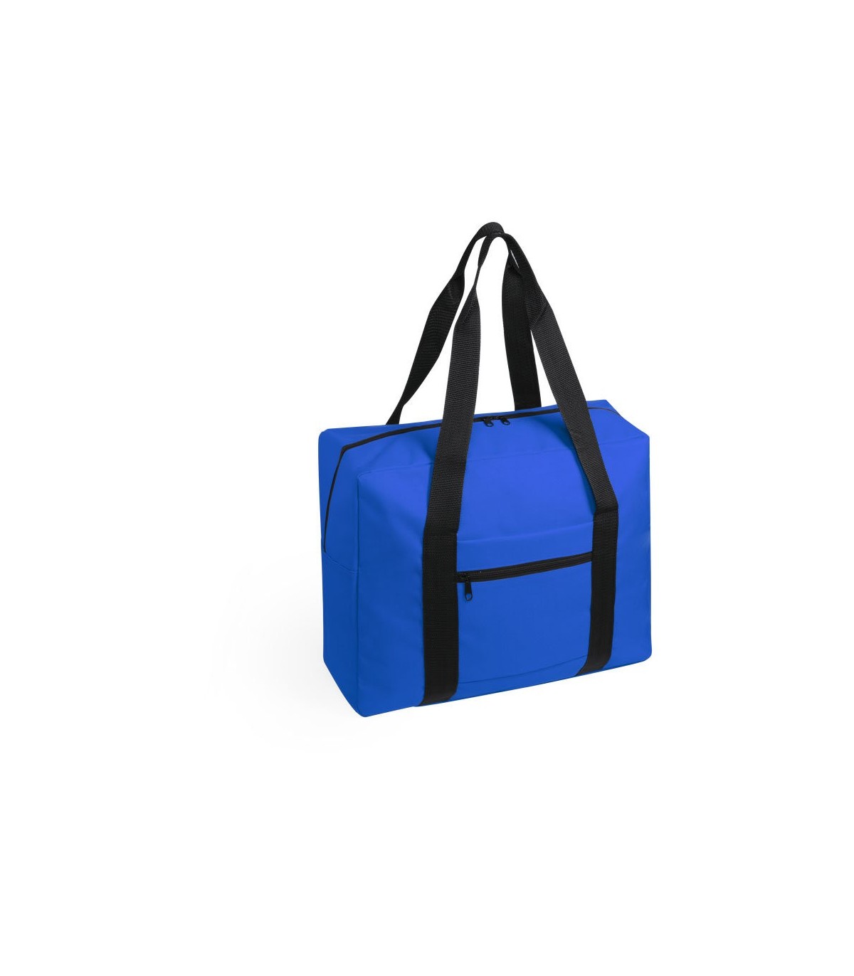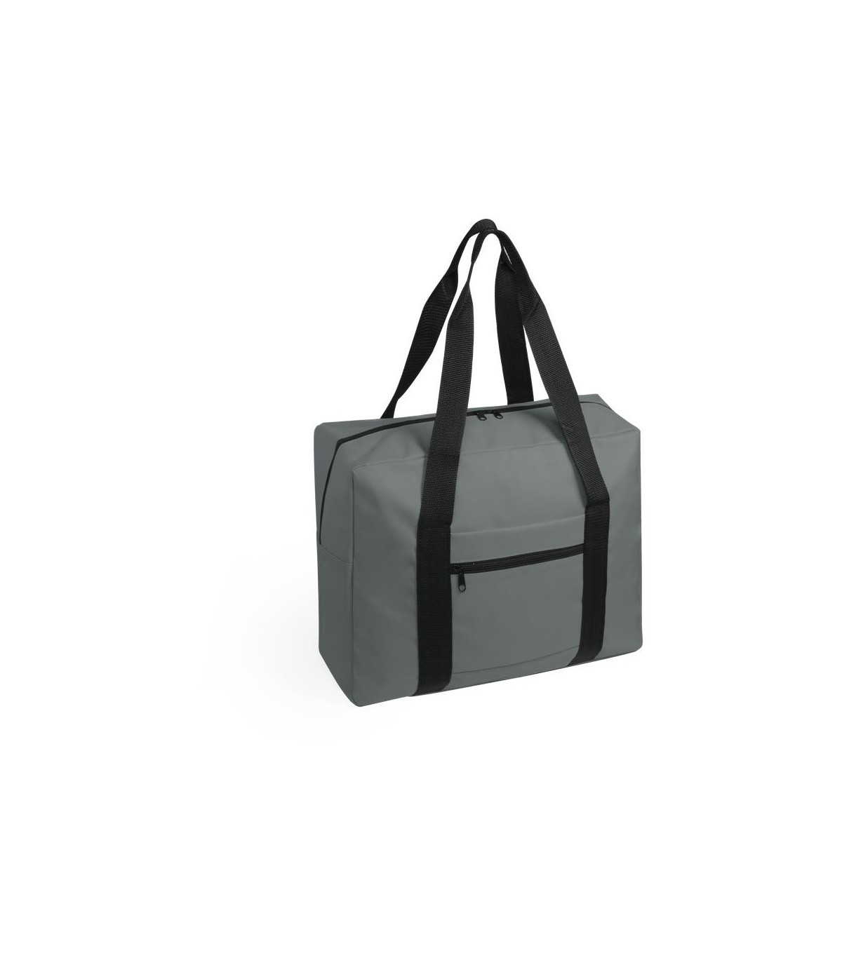 Bolso multiusos en resistente poliéster 600D y desenfadado diseño bicolor. Compartimento principal con cierre de cremallera y doble tirador, con accesorio de ajuste en trolley, resistentes asas de nylon y bolsillo lateral de cremallera.