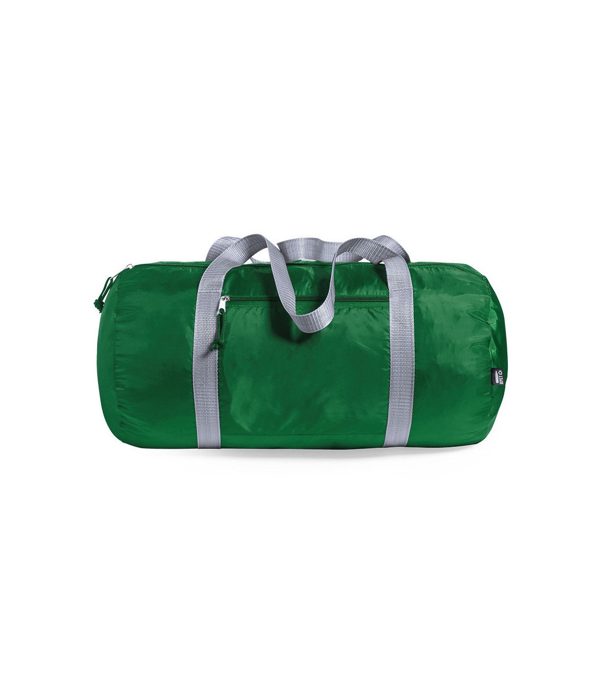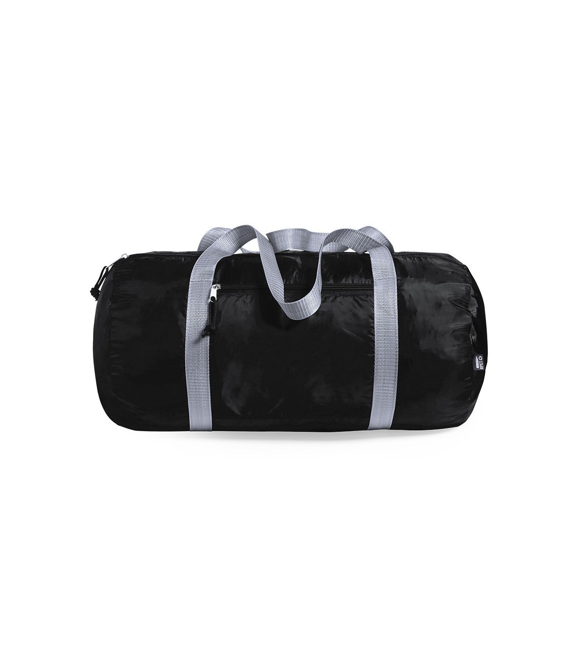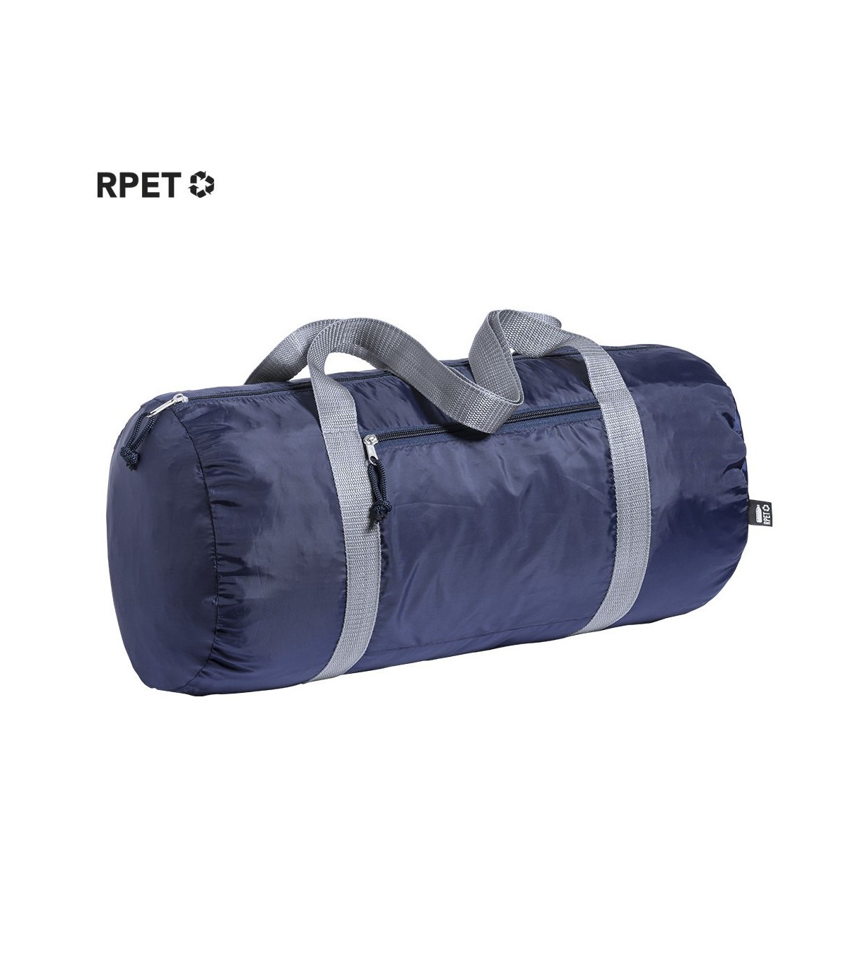 Bolso multiusos en suave poliéster 290T RPET, elaborado a partir de plástico reciclado, para así fomentar la reutilización de residuos plásticos y ayudar a la sostenibilidad del planeta. En desenfadado diseño bicolor retro, con bolsillo principal y frontal con cierres de cremallera y tiradores con cuerdas. Resistentes asas de nylon en contraste alrededor del cuerpo en color gris. Disponible en variada gama de colores, con distintivo RPET en etiqueta.