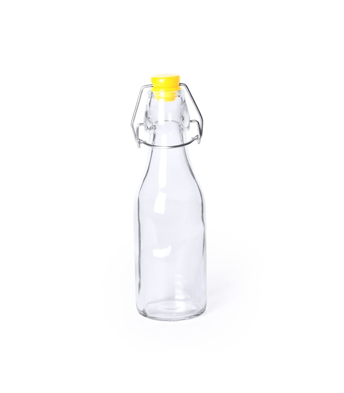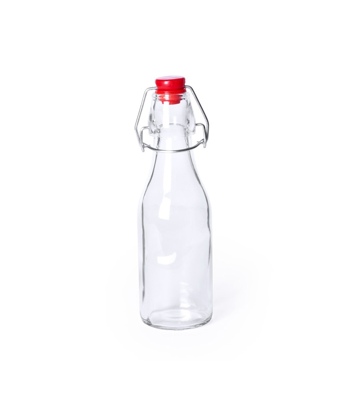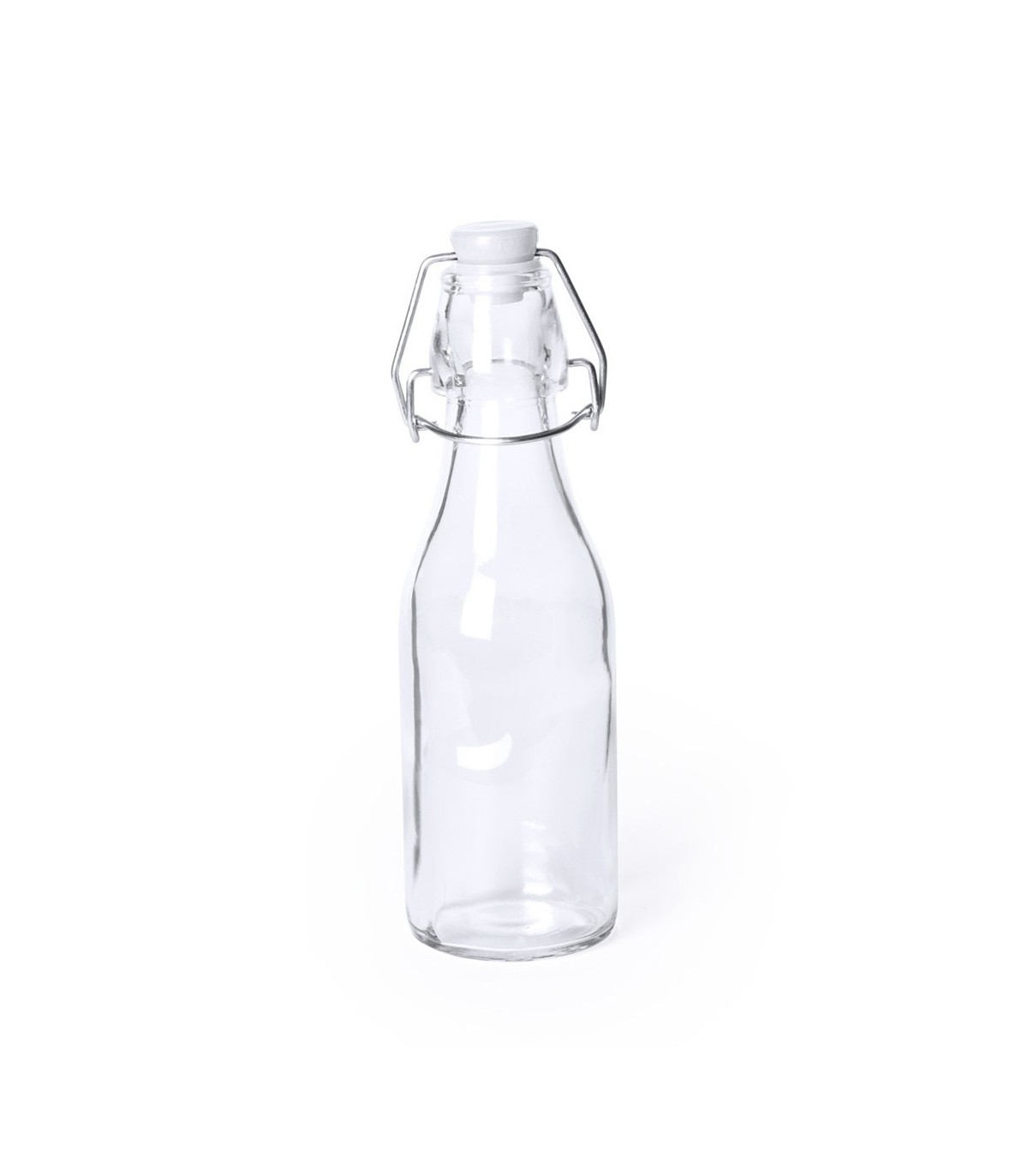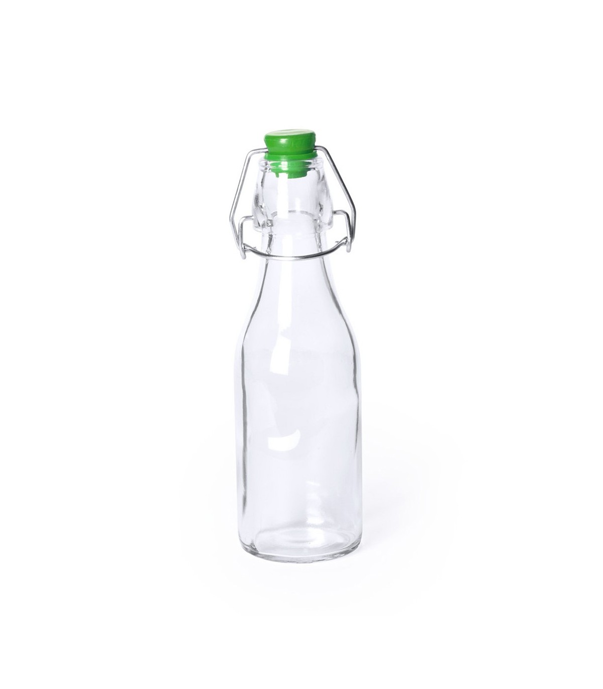 Botella de cristal de 260ml de capacidad con diseño vintage y tapón de seguridad en variada gama de vivos colores. Presentada en atractiva caja de diseño.