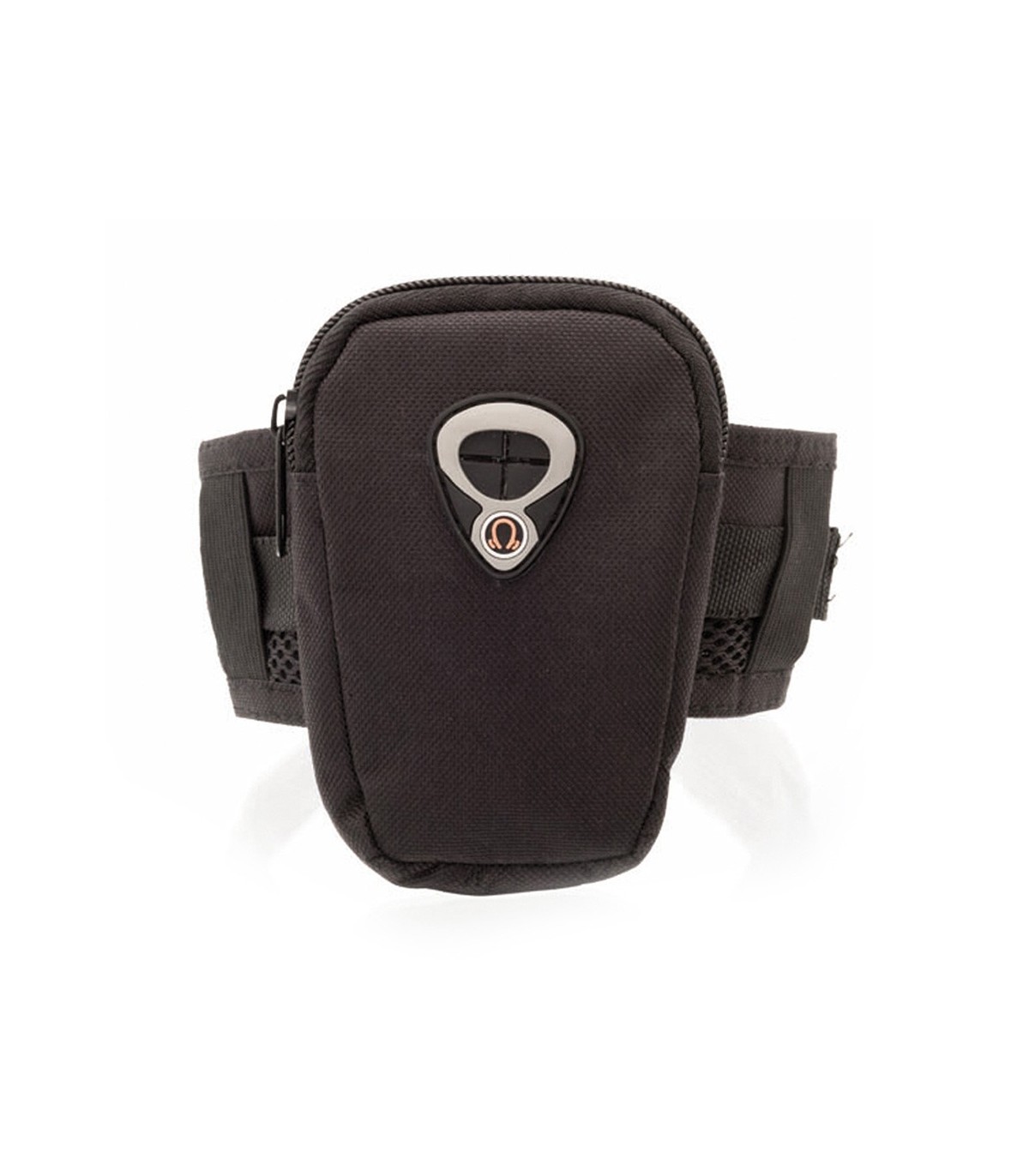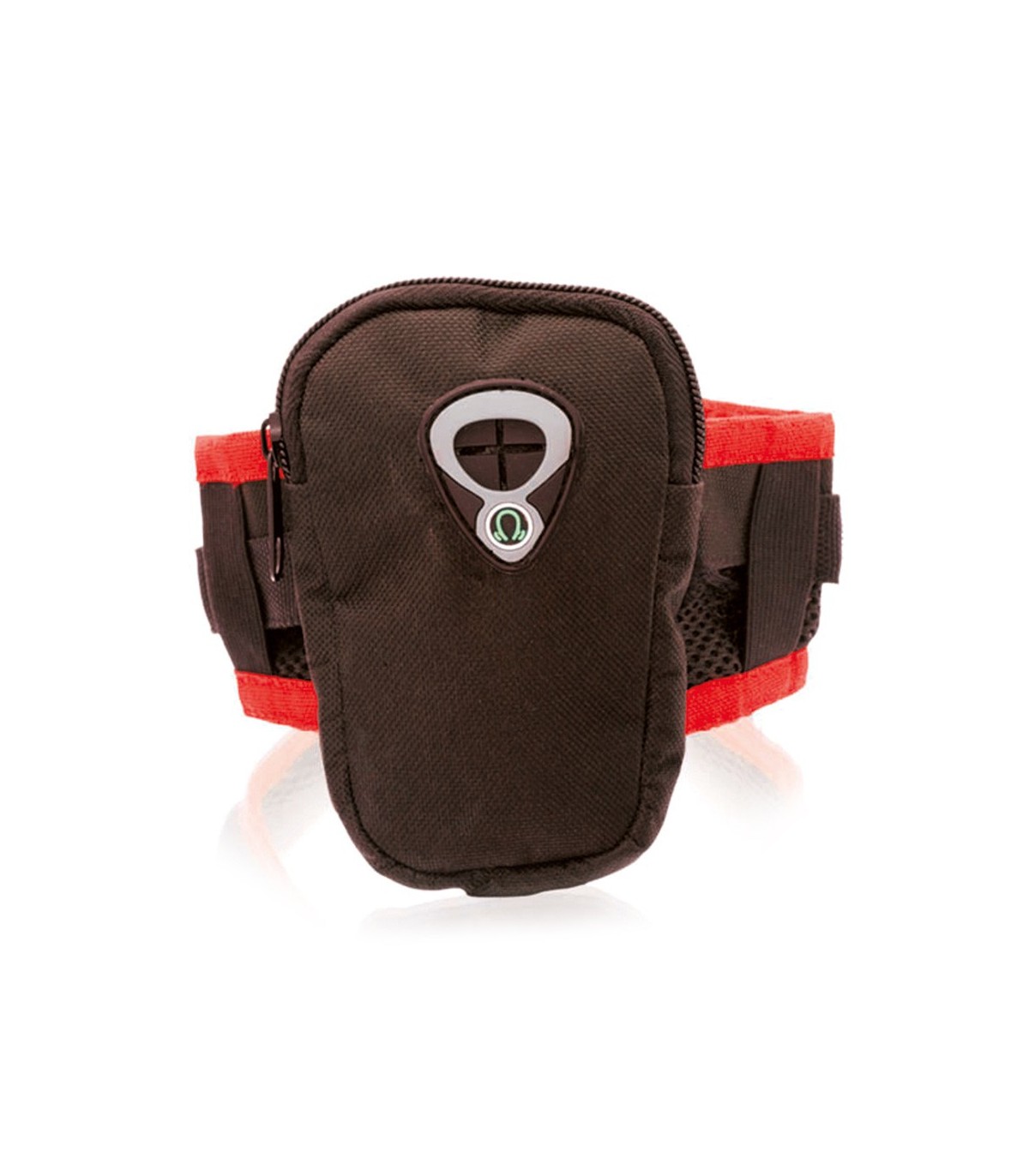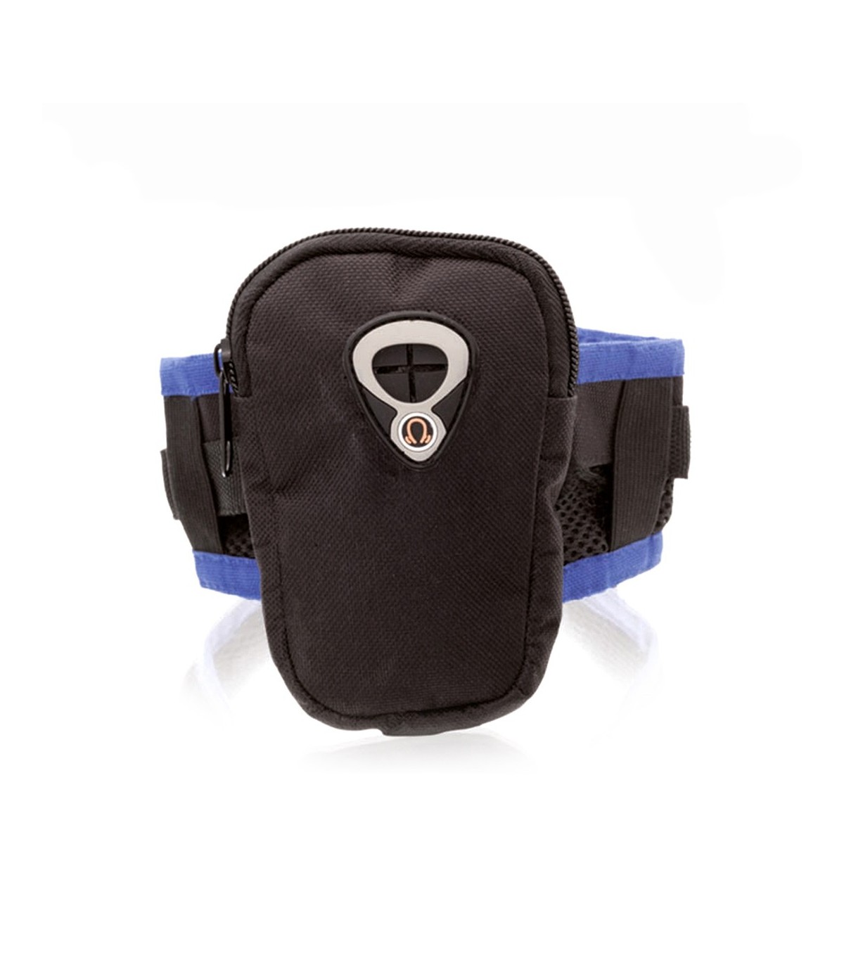 Brazalete deportivo en resistente poliéster 600D de diseño bicolor con cierre de cremallera y salida para auriculares. Con cinta para brazo elástica ajustable.