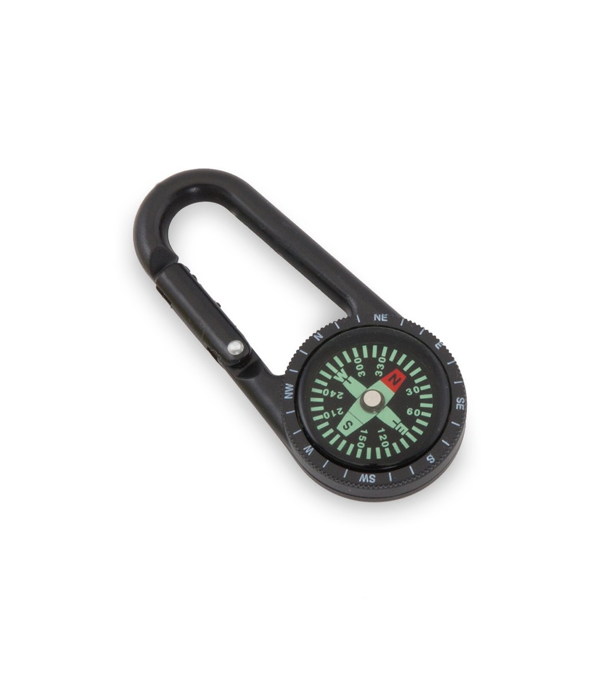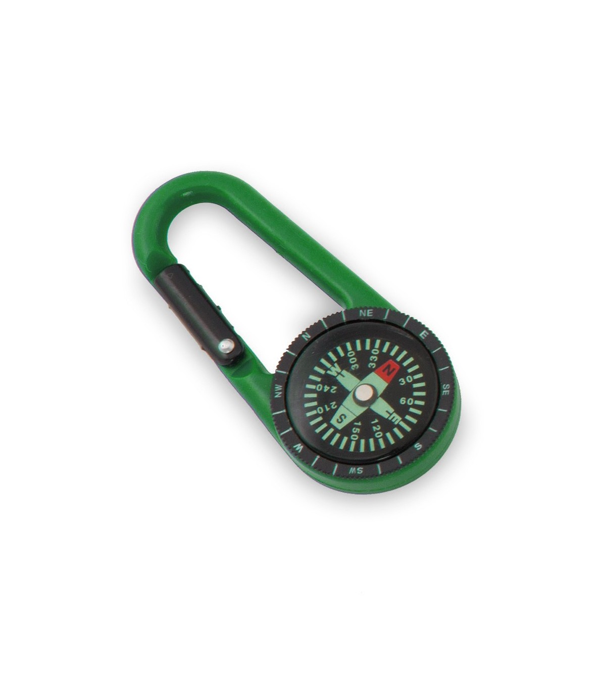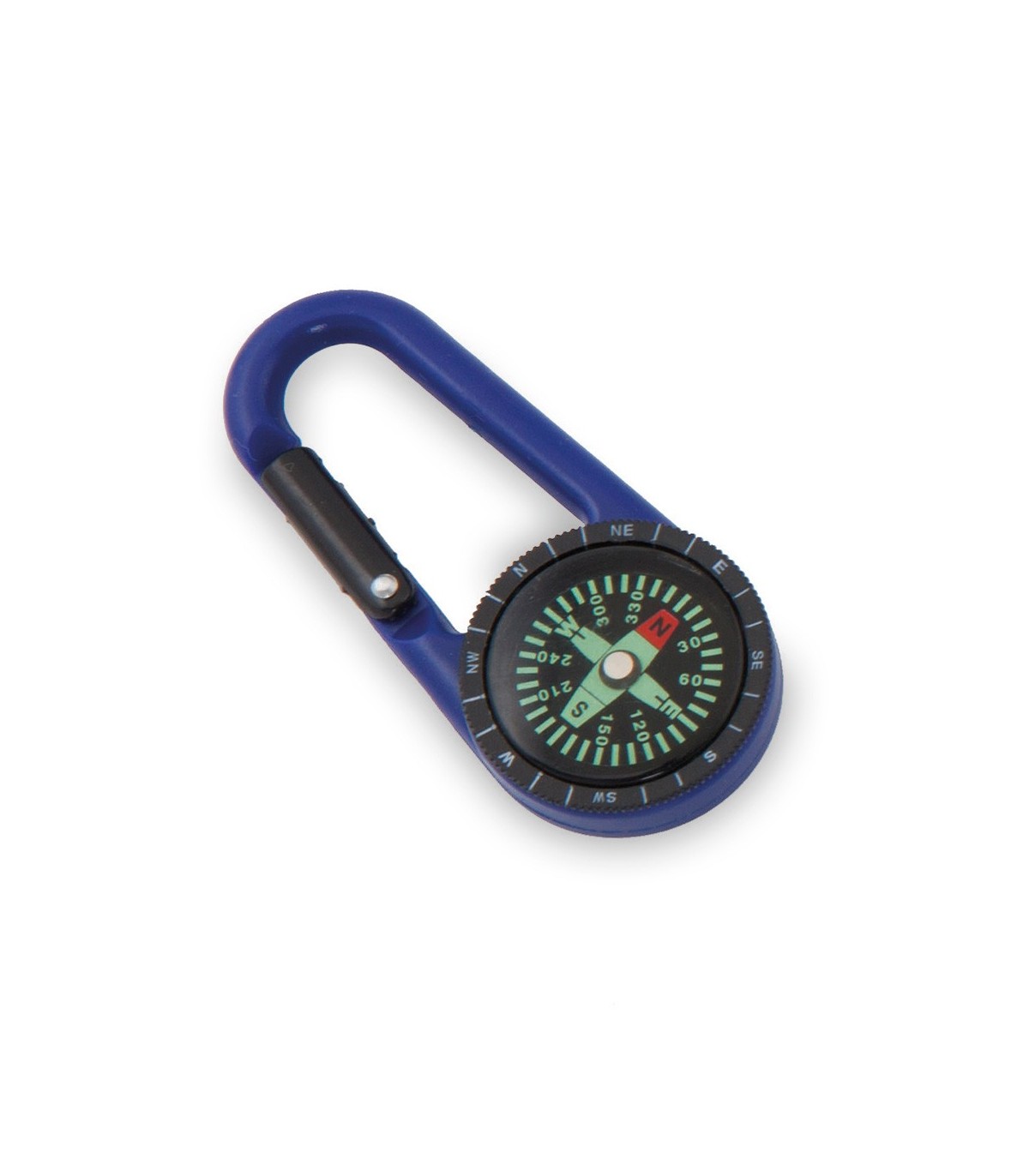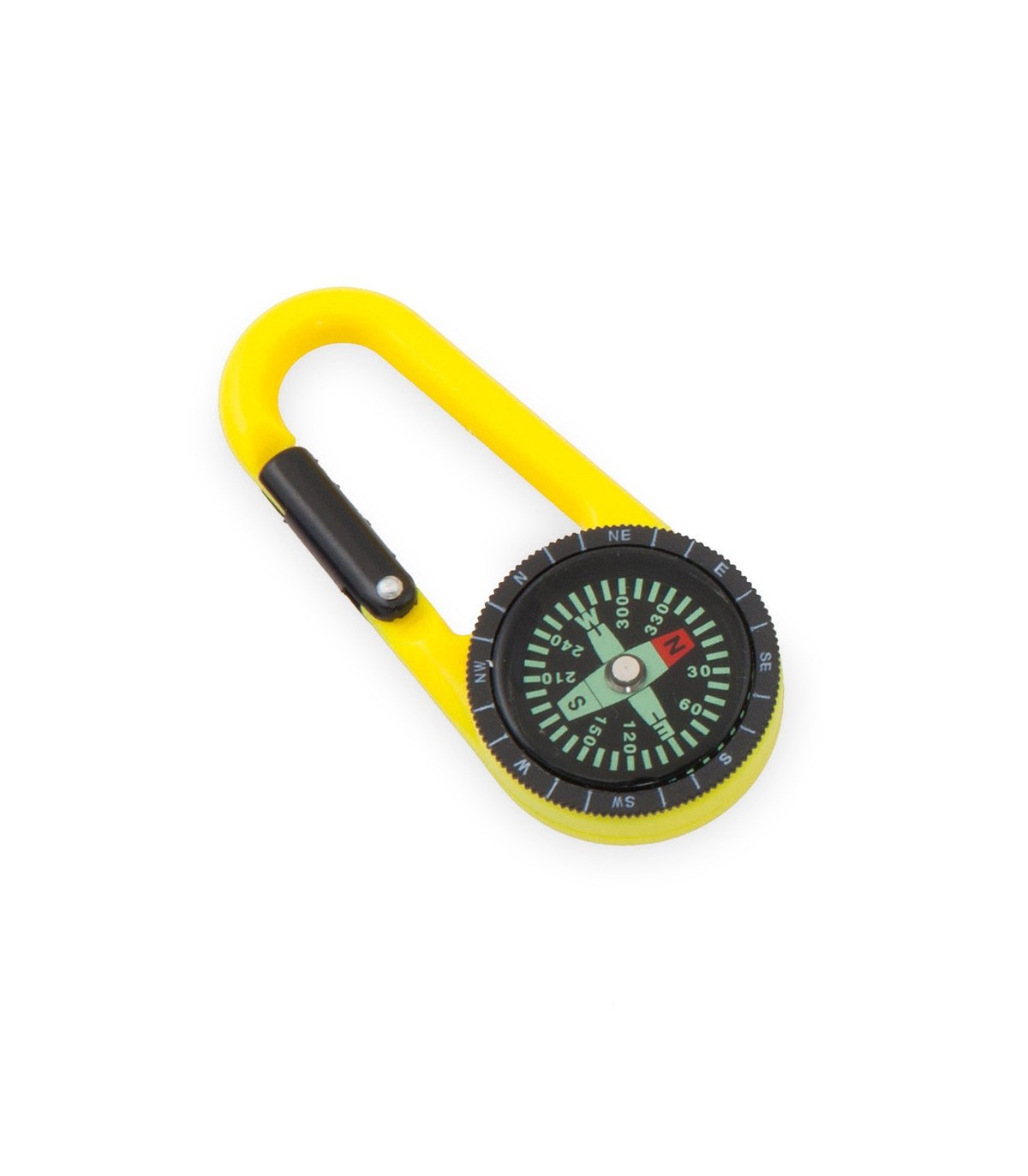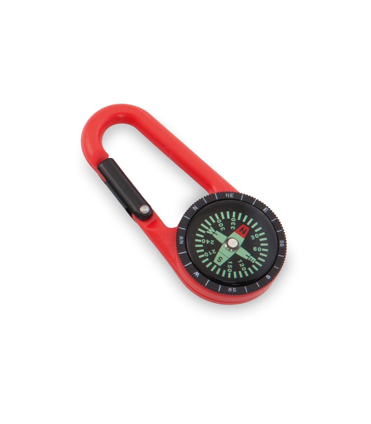 Brújula mosquetón en llamativos colores para imprimir con tu marca, con cuerpo de suave y resistente acabado.