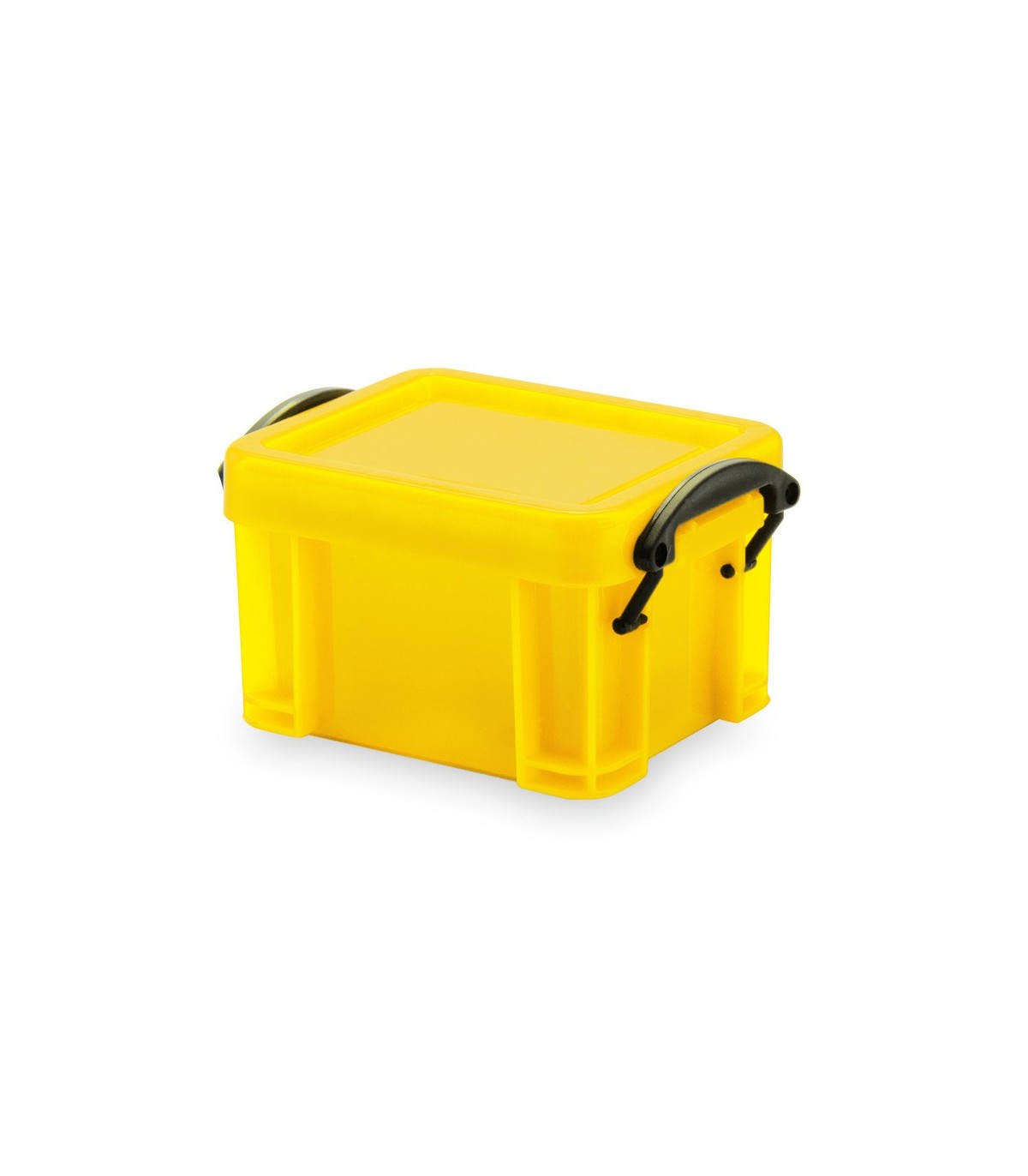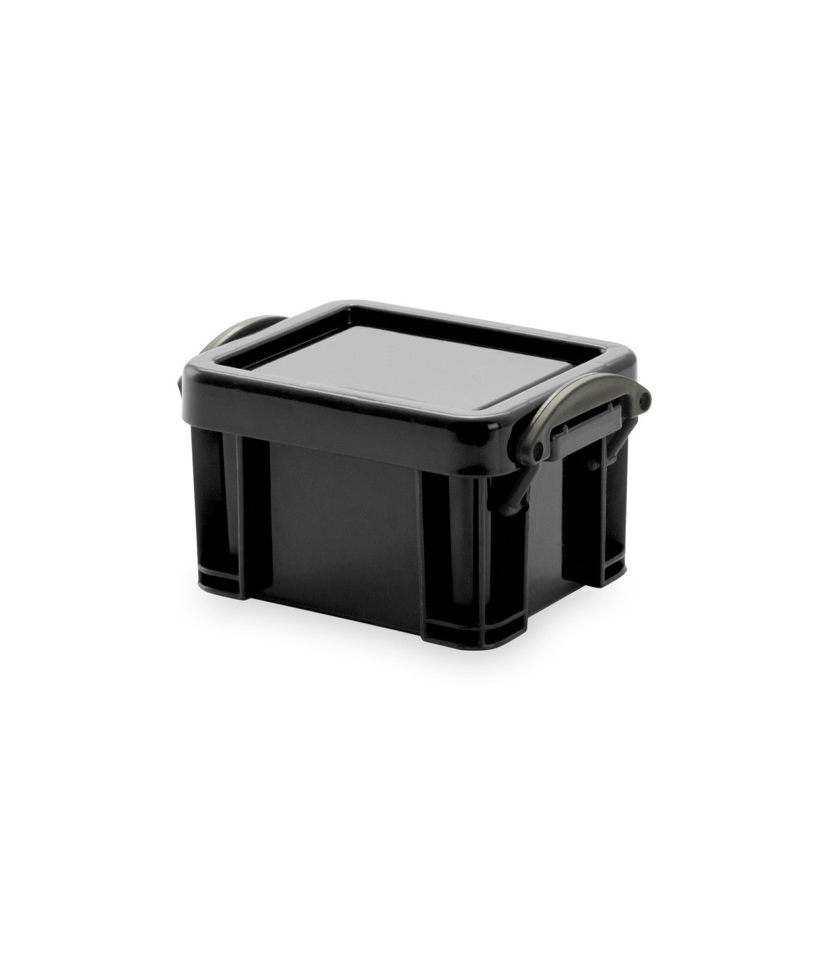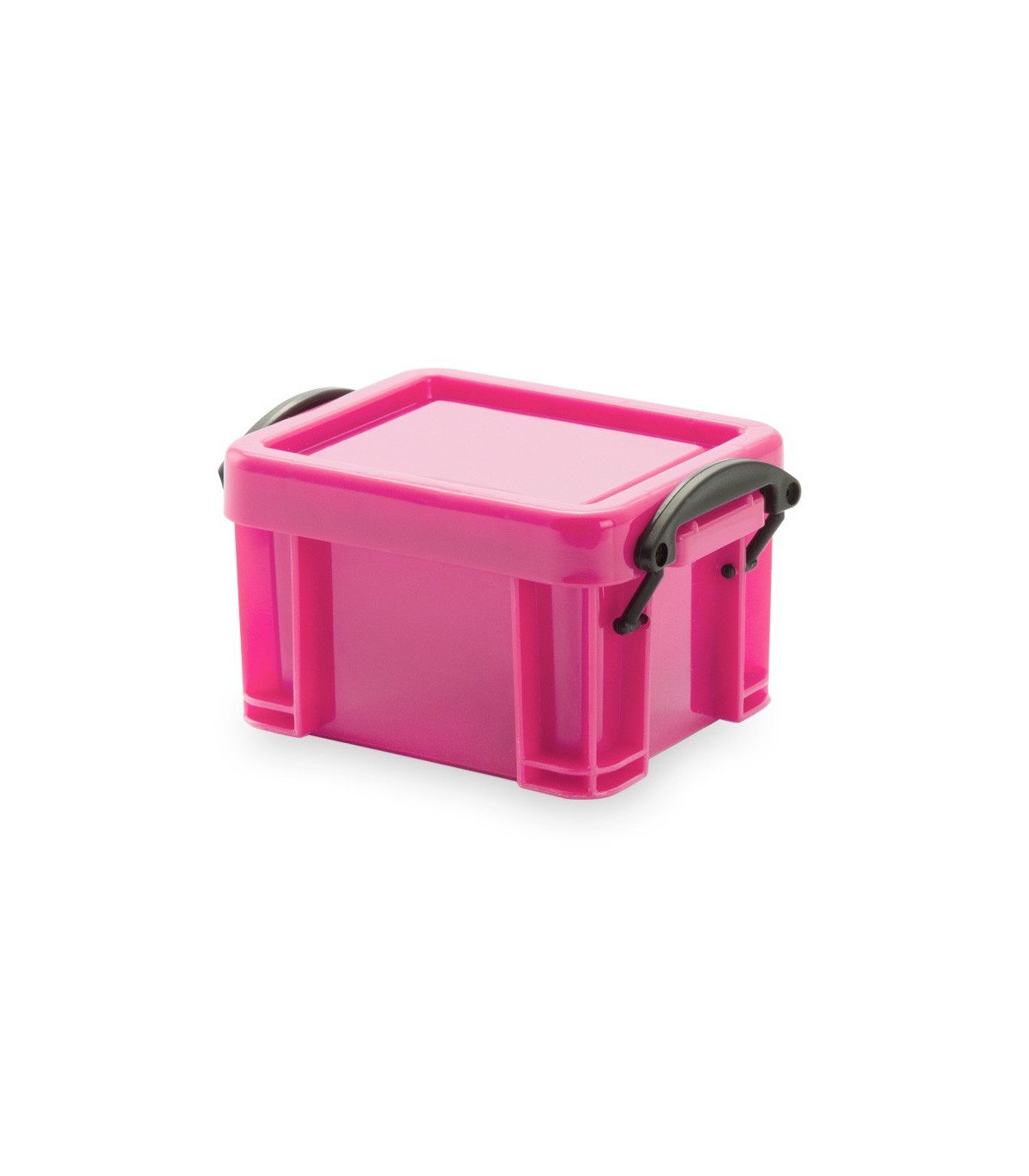 Bonita y practica cajita de colores multiusos para regalos de empresa para peques con tapadera y asa de color negro, personalizadas con logo.