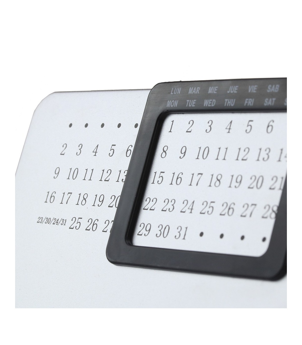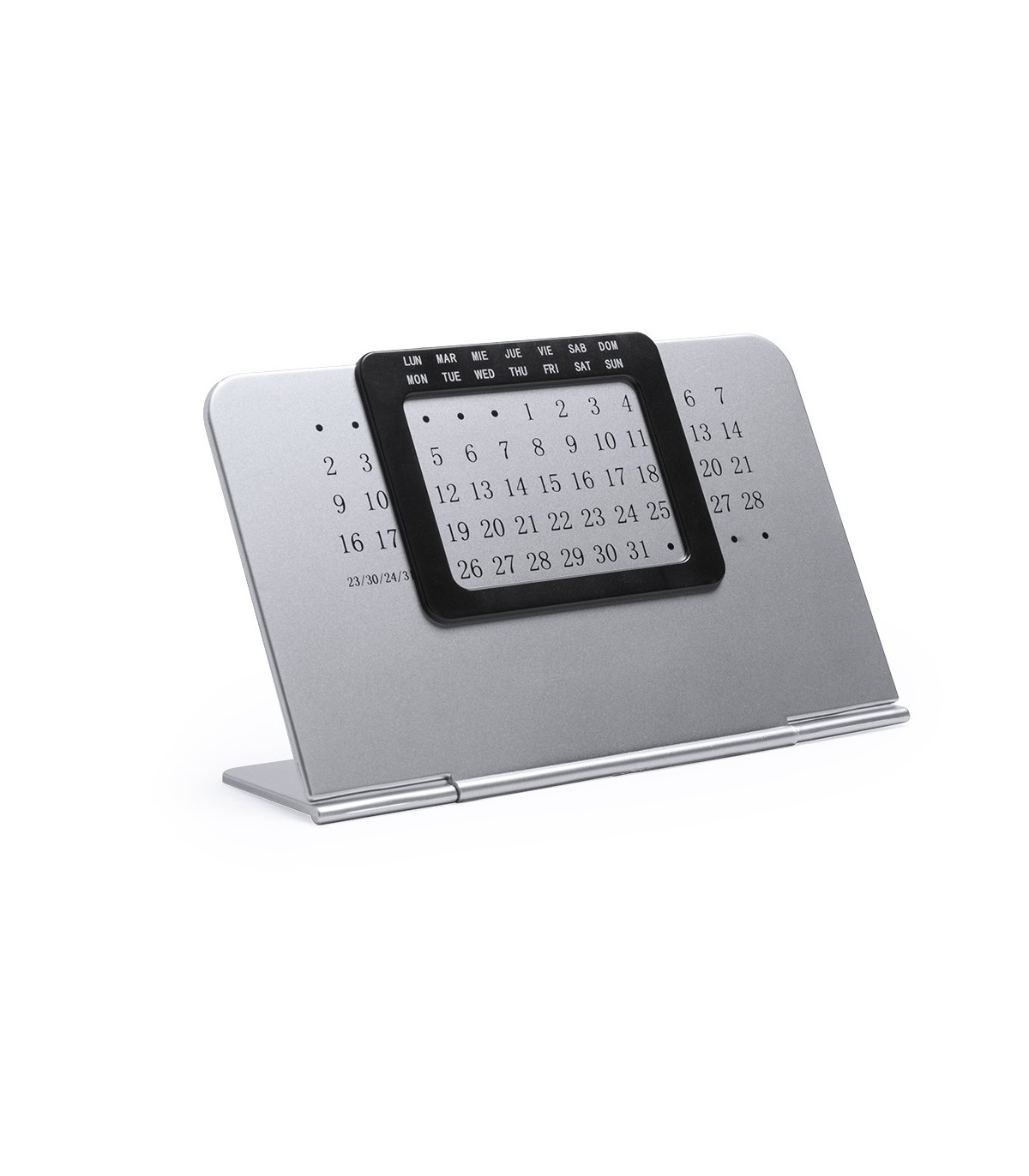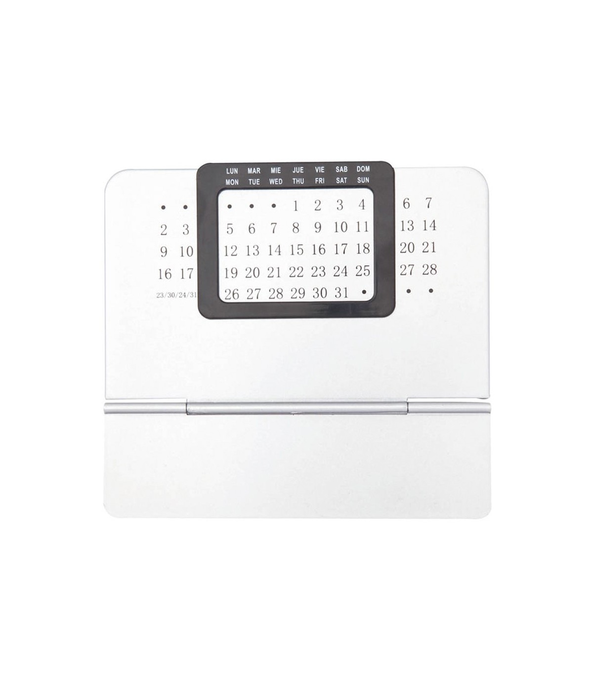 Calendario perpetuo de cuerpo en suave acabado y con soporte plegable. Con banda inferior para marcaje en tampografía.