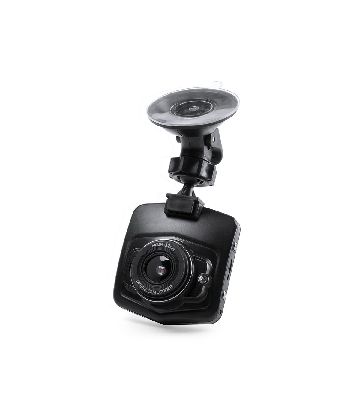 Cámara para luna de automóviles de alta calidad de captura de fotos y vídeo HD 1080p, de diseño compacto y resistente, especialmente diseñada para uso intensivo. Con ventosa de fijación y objetivo gran angular de 130º. Rango de detección de movimiento de hasta 4m, función de visión nocturna, función parking, micrófono, cable para cargador de coche de 3m y conectividad HDMI. Integra una pantalla LCD de 2,4 pulgadas con sistema multilenguaje, además de una ranura para tarjetas micro SD de hasta 32GB de capacidad. Recargable mediante cable USB cargador y sincronizador -incluido-. La funcionalidad de esta cámara la convierten en un gadget muy útil para la seguridad en el automóvil, incluso una vez estacionado. Presentada en atractiva caja de diseño.