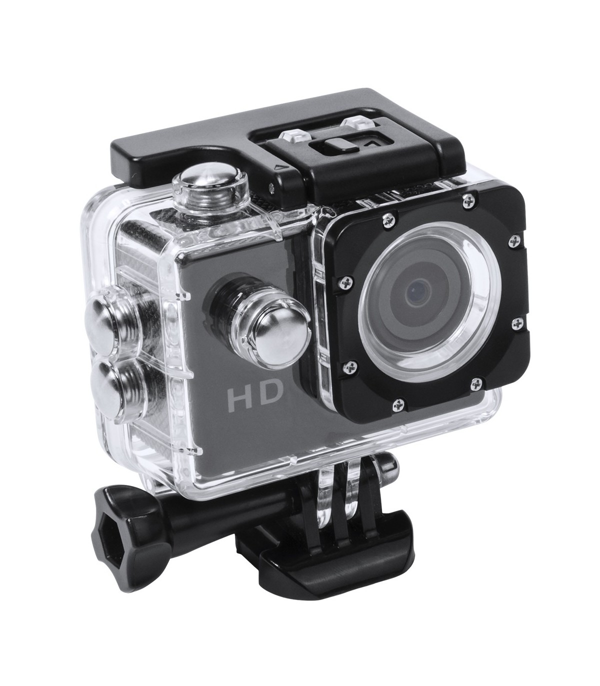 Cámara deportiva de alta calidad de captura de vídeo HD 720p, de diseño compacto y resistente, especialmente diseñada para uso intensivo. Incluye carcasa sumergible hasta 30m de profundidad y multitud de accesorios para ajuste en casco, manillar o cinturón, así como correas ajustables para cabeza y torso o un adaptador giratorio de 360º. La versatilidad y resistencia de esta cámara deportiva la convierten en el gadget perfecto para capturar, con una calidad excepcional, cualquier actividad deportiva. Con función cámara de fotos Full HD 1080p, ranura para tarjetas micro SD de hasta 32 GB de capacidad, sistema multilenguaje, y recargable mediante cable microUSB -incluido-. Presentada en atractiva caja de diseño.