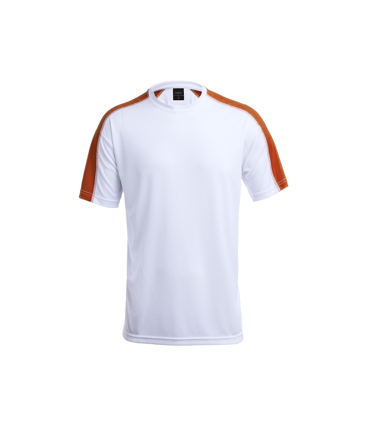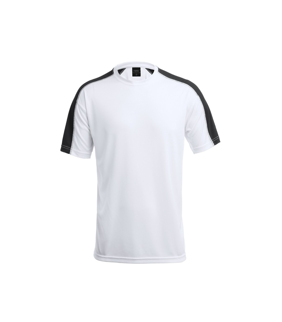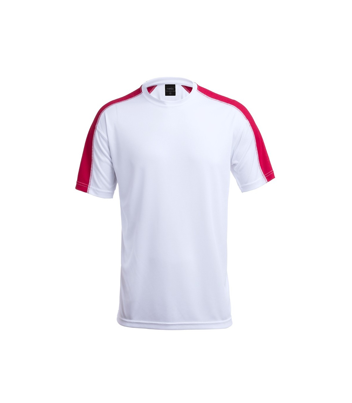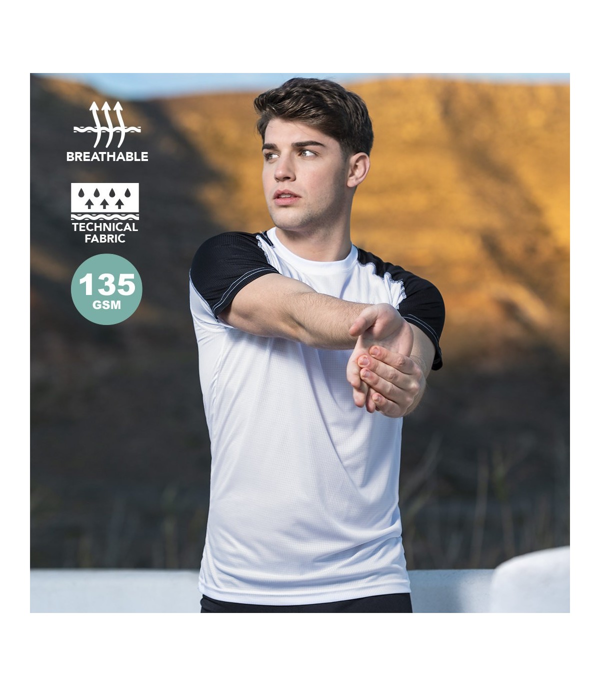 Camiseta técnica para adulto en material dynamic, altamente transpirable y confeccionada en tela 100% poliéster de 135g/m². Original diseño en color blanco, con franja de color en las mangas. Disponible en variados colores y en tallas S, M, L, XL, XXL.