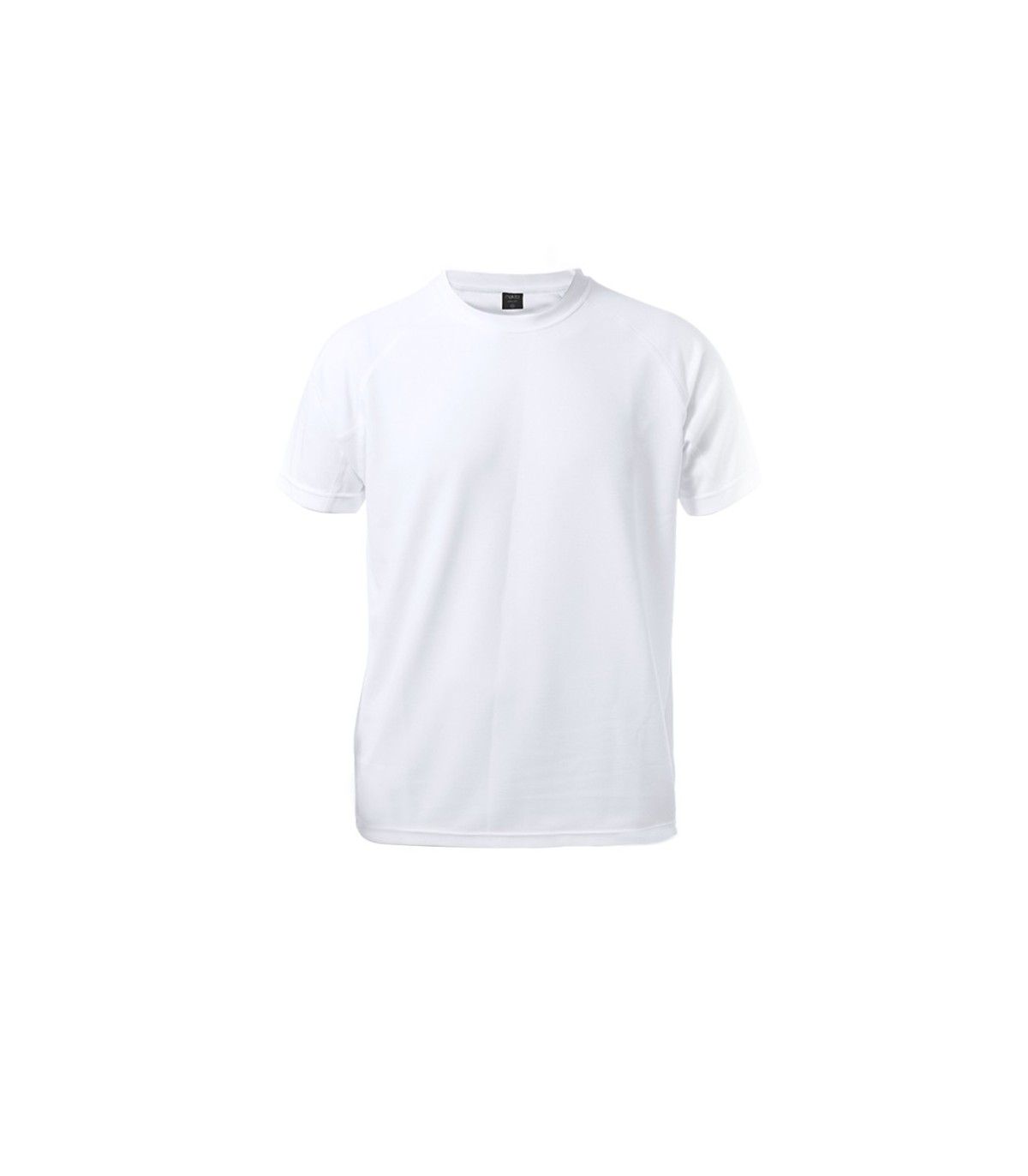 Camisetas deportivas para niños en poliéster blancas fabricadas en poliéster sistema refrigerante ideales para eventos y ferias deportivas grabadas con logo de empresa.