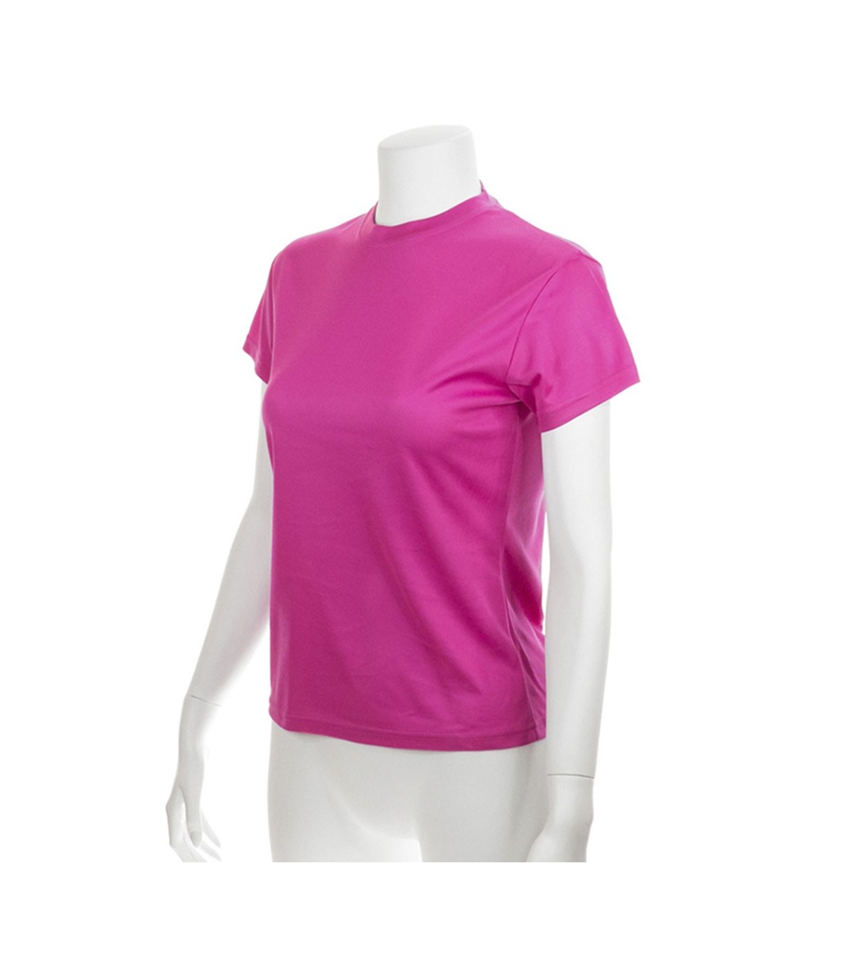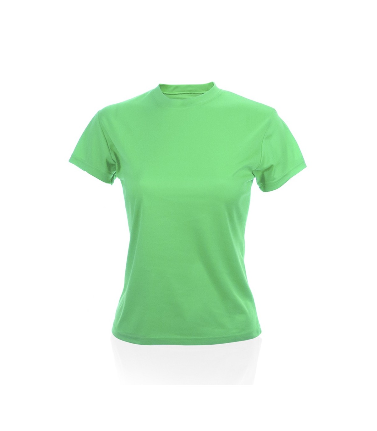 Camiseta técnica para mujer en material 100% poliéster transpirable de 135g/m². Disponible en originales colores para imprimir con tu diseño y en tallas S, M, L.