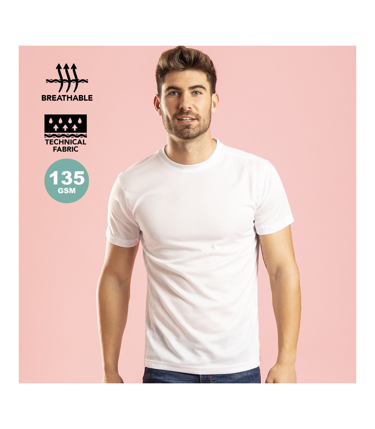 Camisetas transpirables personalizadas publicitarias para comprar online y marcar con tu frase o logo para todo tipo de eventos promocionales.