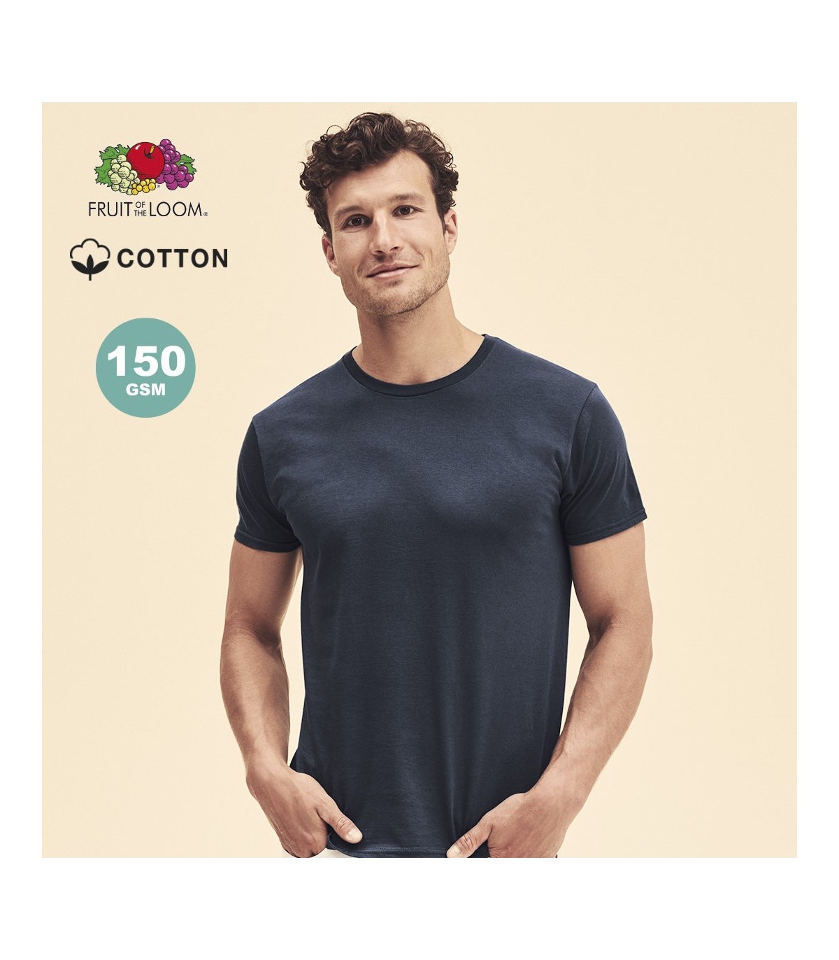 Camisetas para adulto color Iconic de Fruit Of The Loom. hechas en material 100% algodón peinado Ring Spun de 150g/m2 hilado en anillo. De acabado suave y corte moderno, con cuello redondo estrecho de canalé1x1 y tapeta a juego. Con etiquetas que puedes remover de forma fácil y disponible en diferentes colores para personalizar. Tallas S, M, L, XL, XXL.