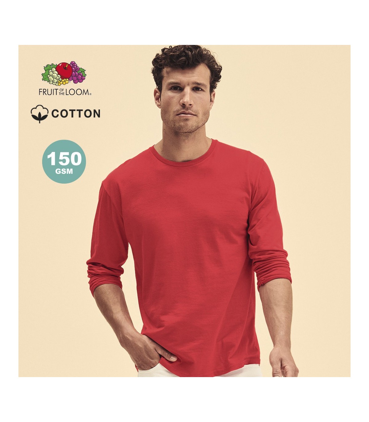 Camisetas adulto color Iconic Long Sleeve de Fruit Of The Loom. Manga larga, hechas en material 100% algodón peinado Ring Spun de 150g/m2. De acabado suave y corte clásico, con cuello redondo estrecho de canalé 1x1 y tapeta a juego. Con etiquetas que puedes remover de forma fácil y disponible en diferentes colores para personalizar. Tallas S, M, L, XL, XXL.