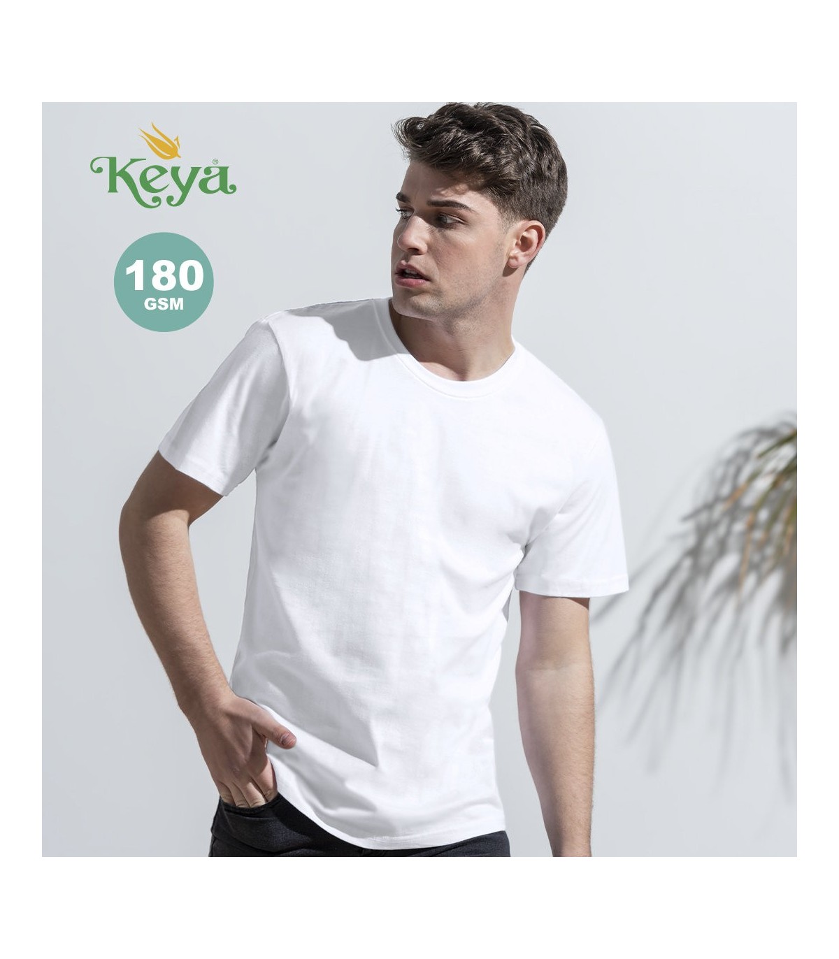 Camiseta para adulto Keya MC 180. En material 100% algodón de 180g/m². Disponible en color blanco y en tallas S, M, L, XL, XXL, 3XL.