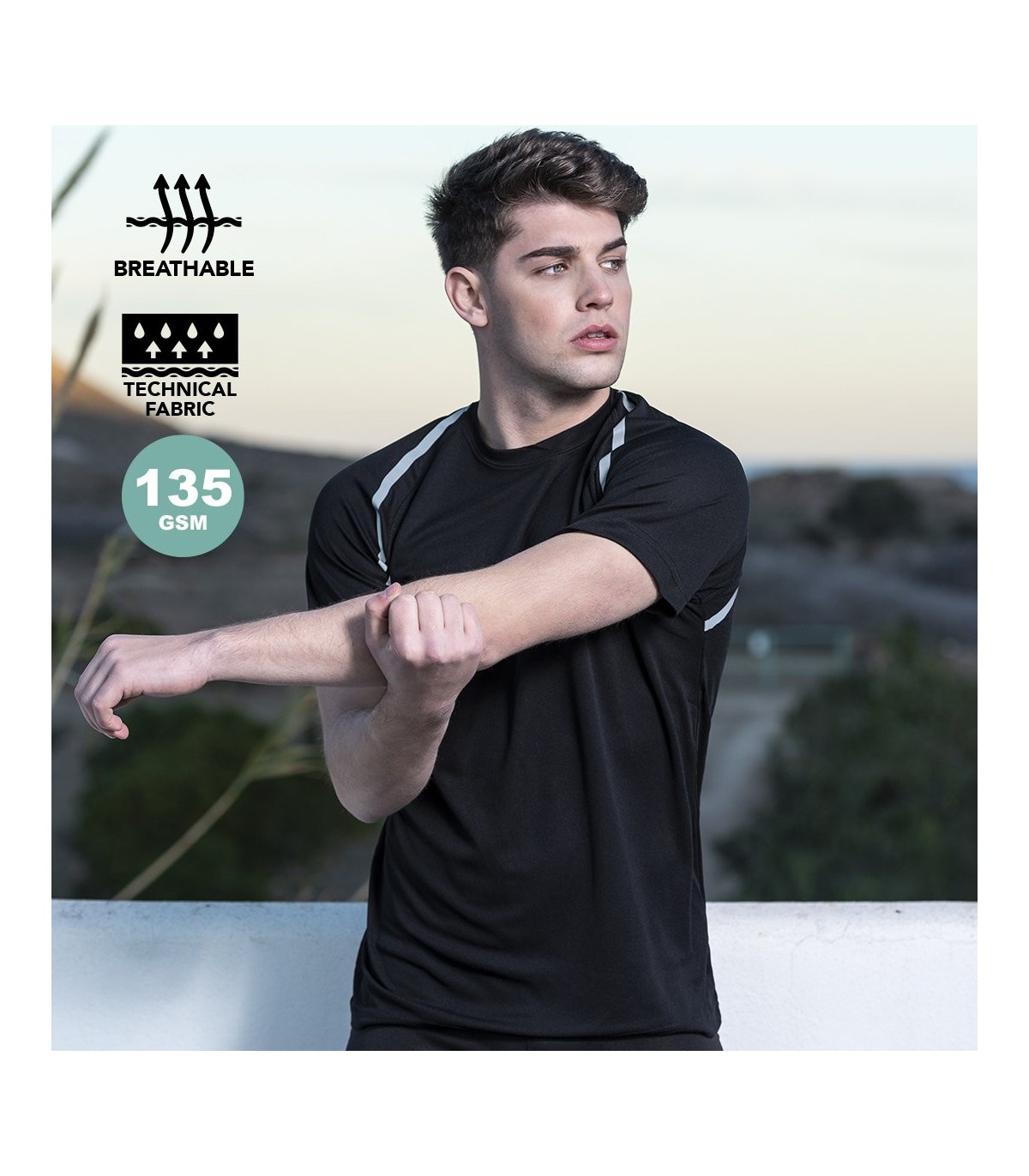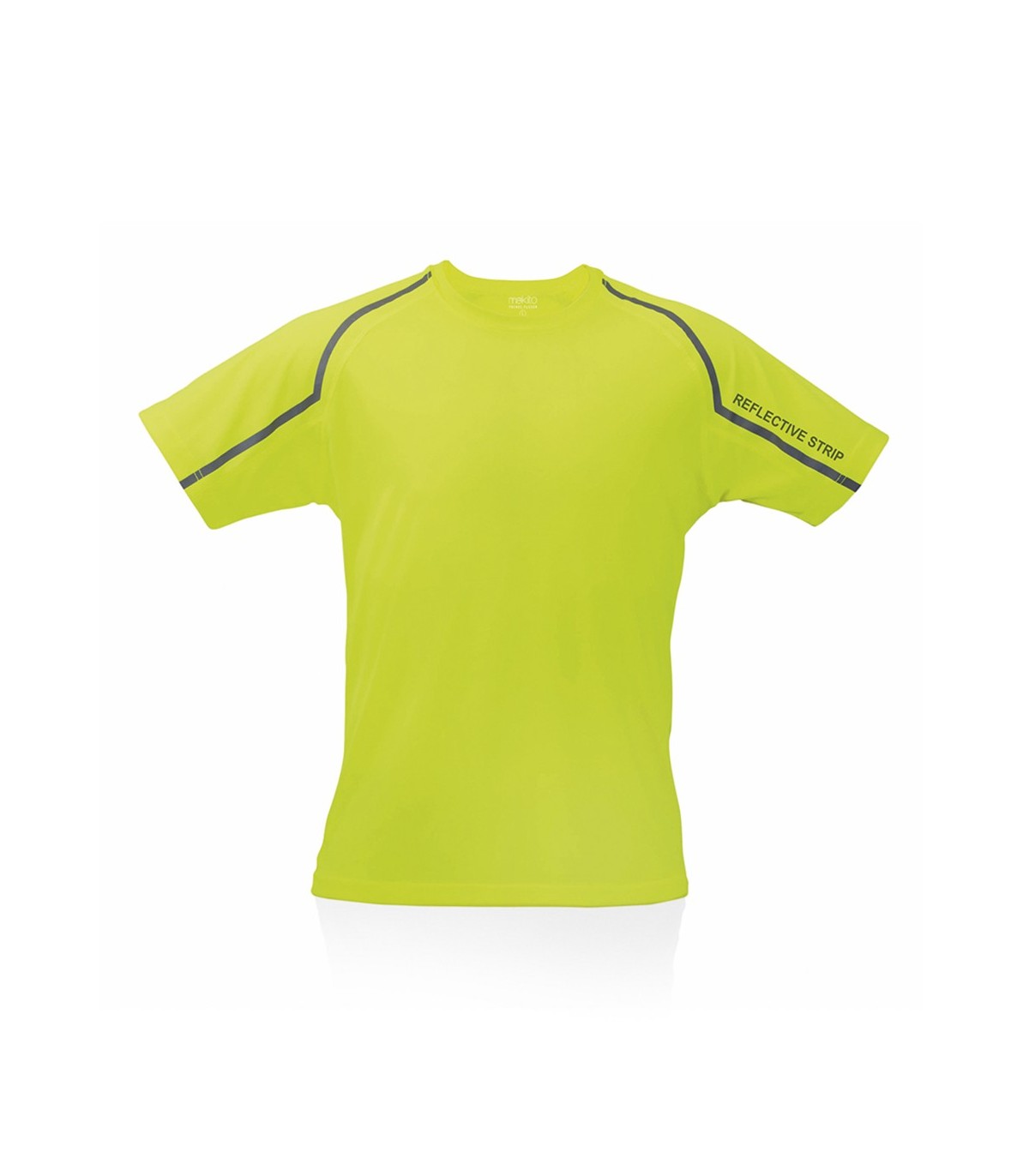 Camiseta técnica para adulto en material 100% poliéster transpirable de 135g/m². En originales colores para imprimir con tu diseño y con tiras reflectantes frontales y posteriores. Disponible en tallas S, M, L, XL, XXL.