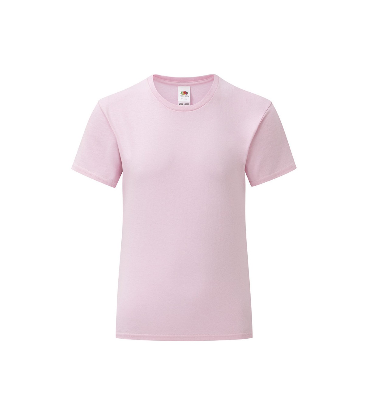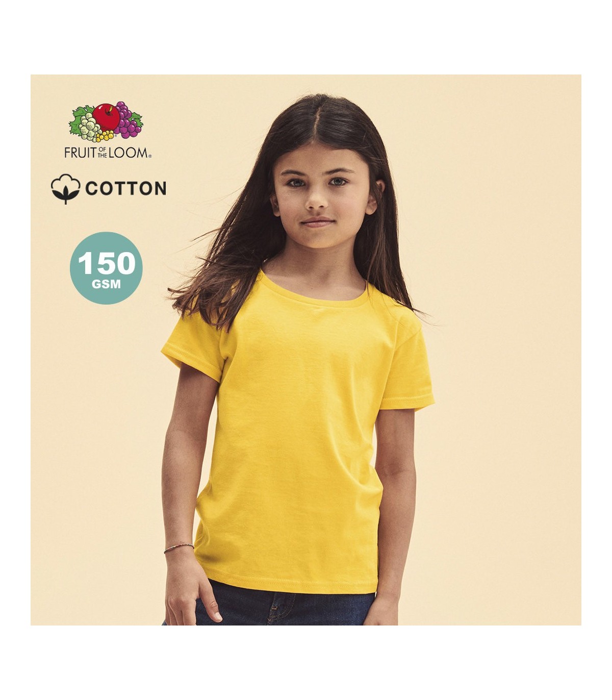 Camisetas para niña color Iconic de Fruit Of The Loom. de 100% algodón peinado Ring Spun de 150g/m². Con corte entallado, con costuras laterales y cuello redondo estrecho de canalé 1x1 y tapeta a juego.